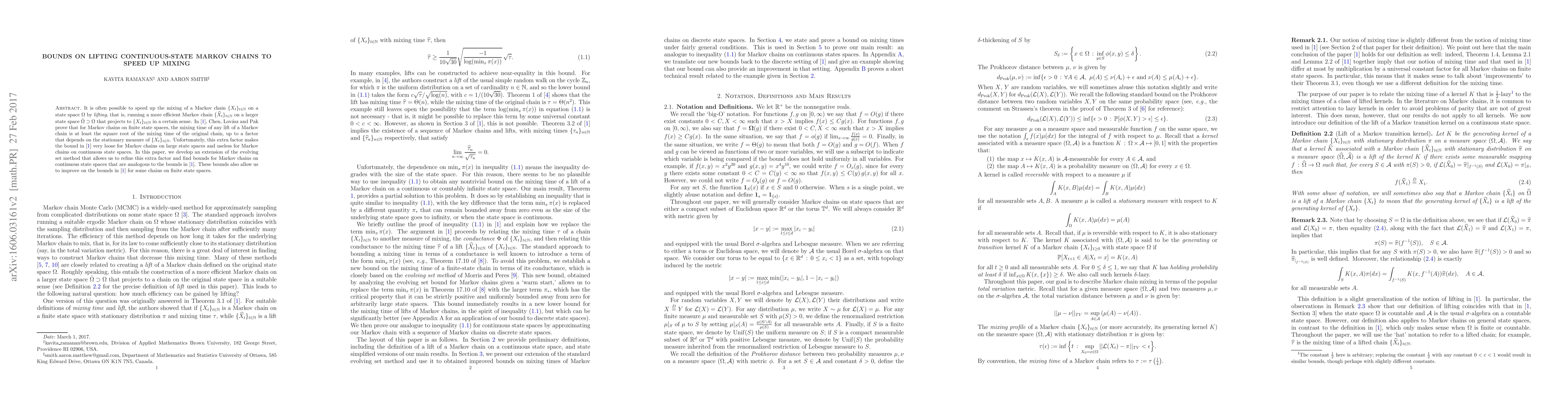 It is often possible to speed up the mixing of a Markov chain $\{ X_{t} \}_{t \in \mathbb{N}}$ on a state space $\Omega$ by \textit{lifting}, that is, running a more efficient Markov chain $\{ \hat{X}_{t} \}_{t \in \mathbb{N}}$ on a larger state space $\hat{\Omega} \supset \Omega$ that projects to $\{ X_{t} \}_{t \in \mathbb{N}}$ in a certain sense. In [CLP99], Chen, Lov{\'a}sz and Pak prove that for Markov chains on finite state spaces, the mixing time of any lift of a Markov chain is at least the square root of the mixing time of the original chain, up to a factor that depends on the stationary measure. Unfortunately, this extra factor makes the bound in [CLP99] very loose for Markov chains on large state spaces and useless for Markov chains on continuous state spaces. In this paper, we develop an extension of the evolving set method that allows us to refine this extra factor and find bounds for Markov chains on continuous state spaces that are analogous to the bounds in [CLP99]. These bounds also allow us to improve on the bounds in [CLP99] for some chains on finite state spaces.