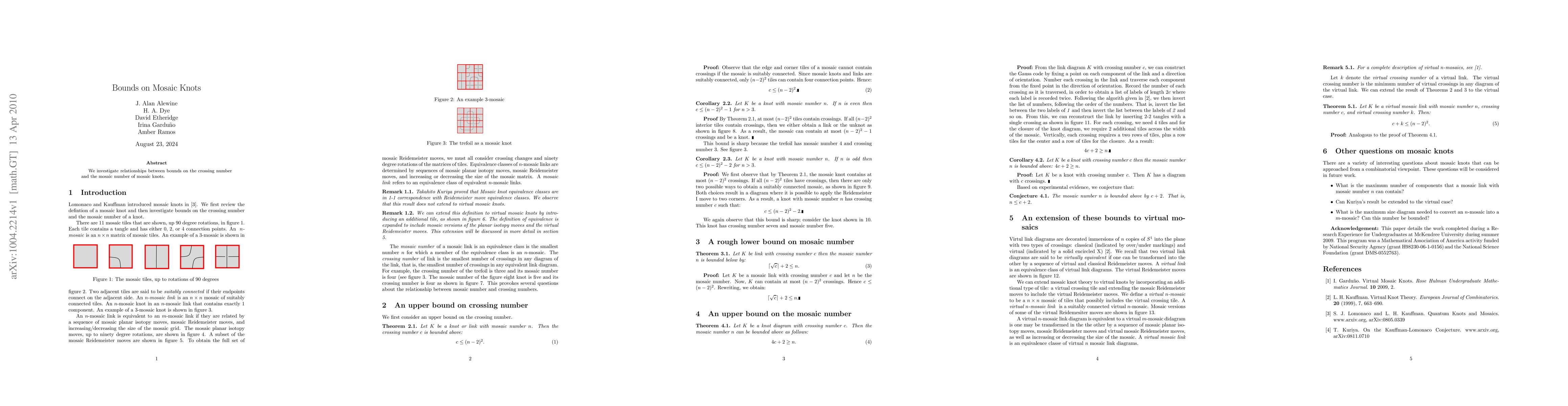Summary: This paper explores the connection between the crossing number and the mosaic number of mosaic knots, aiming to establish bounds that characterize their relationship.