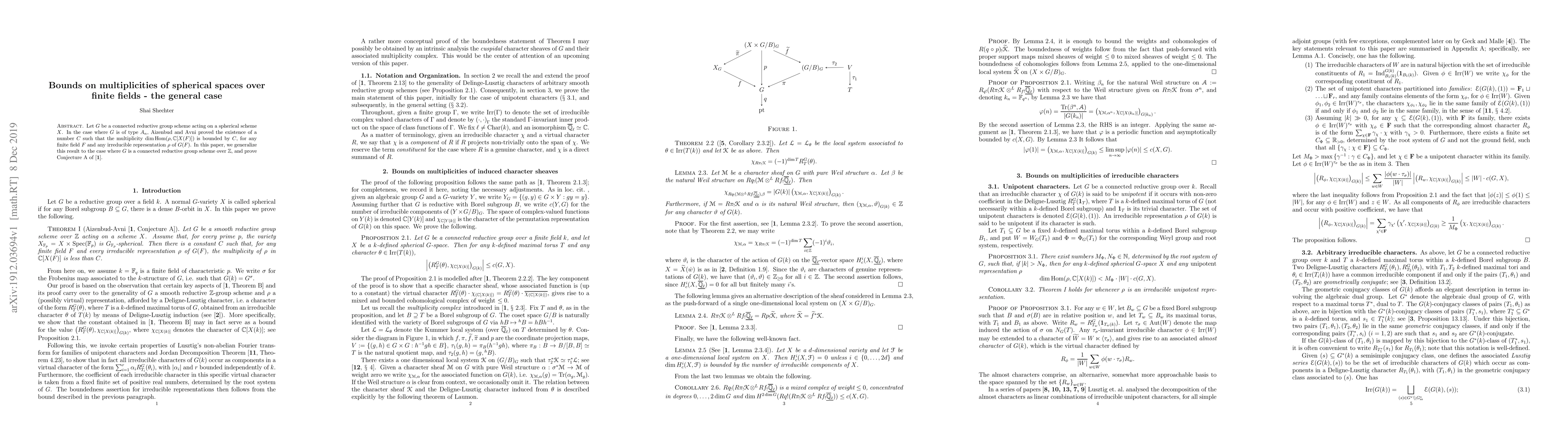 This paper generalizes a previous result on multiplicities of spherical spaces over finite fields to connected reductive group schemes over the integers, proving Conjecture A.