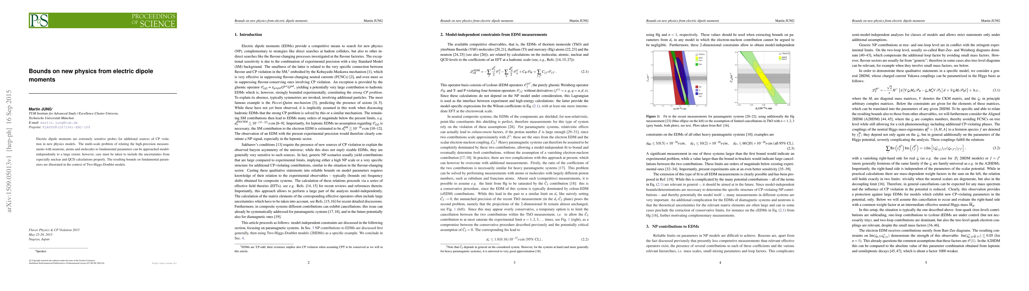 This paper investigates electric dipole moments as sensitive indicators of CP violation in new physics, providing model-independent bounds on fundamental parameters. It highlights the importance of accurately incorporating uncertainties from nuclear and QCD calculations, and illustrates the results in the context of Two-Higgs-Doublet models.