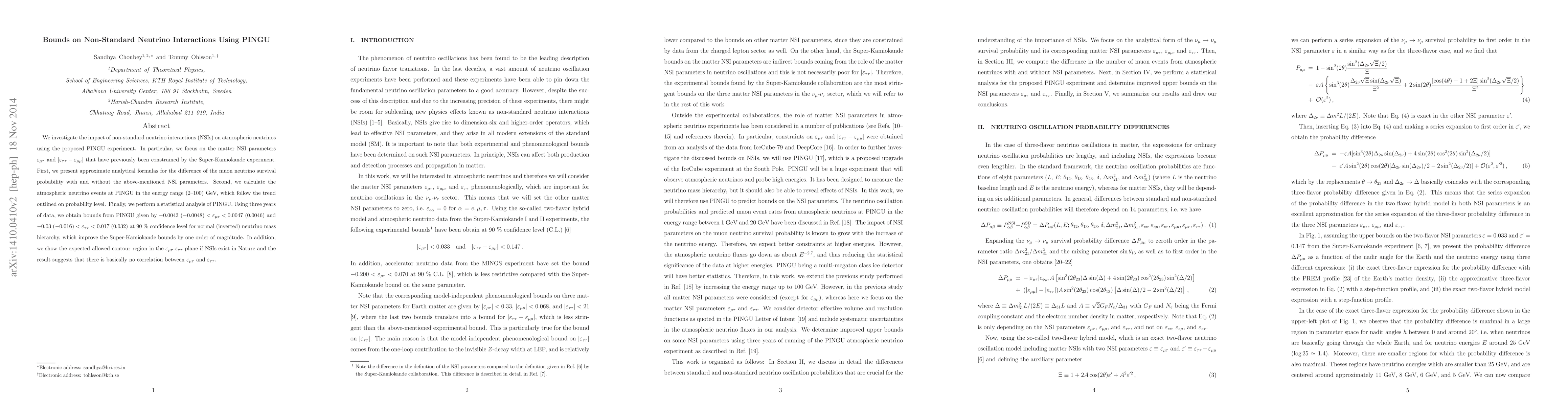 This paper investigates the effects of non-standard neutrino interactions (NSIs) on atmospheric neutrinos using the PINGU experiment, deriving improved bounds on the NSI parameters $\varepsilon_{\mu\tau}$ and $|\varepsilon_{\tau\tau} - \varepsilon_{\mu\mu}|$. The results show a significant enhancement over previous Super-Kamiokande constraints, with no correlation found between the two parameters.