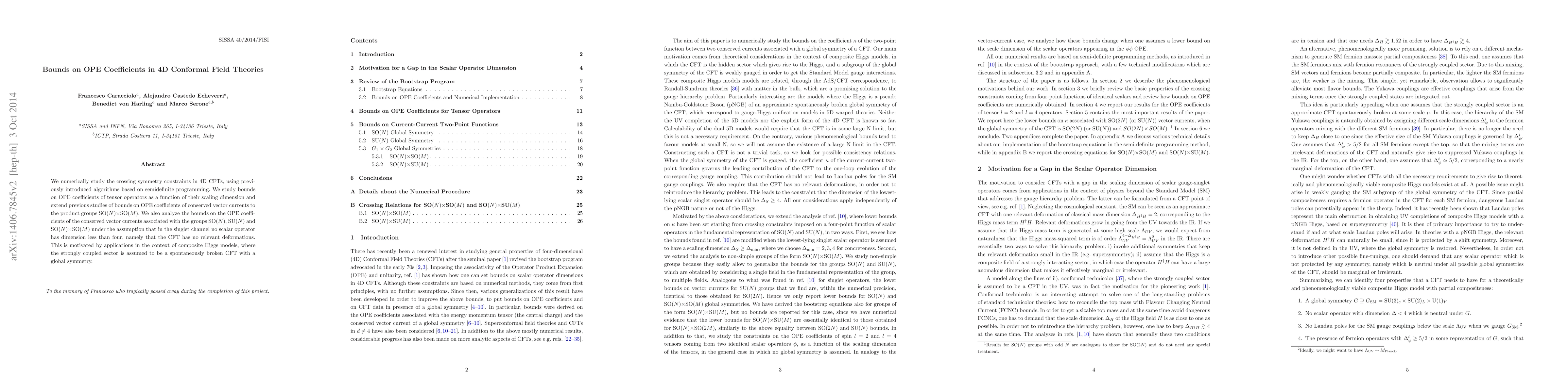 This paper studies bounds on OPE coefficients in 4D conformal field theories using semidefinite programming algorithms, aiming to understand the properties of strongly coupled sectors in composite Higgs models.