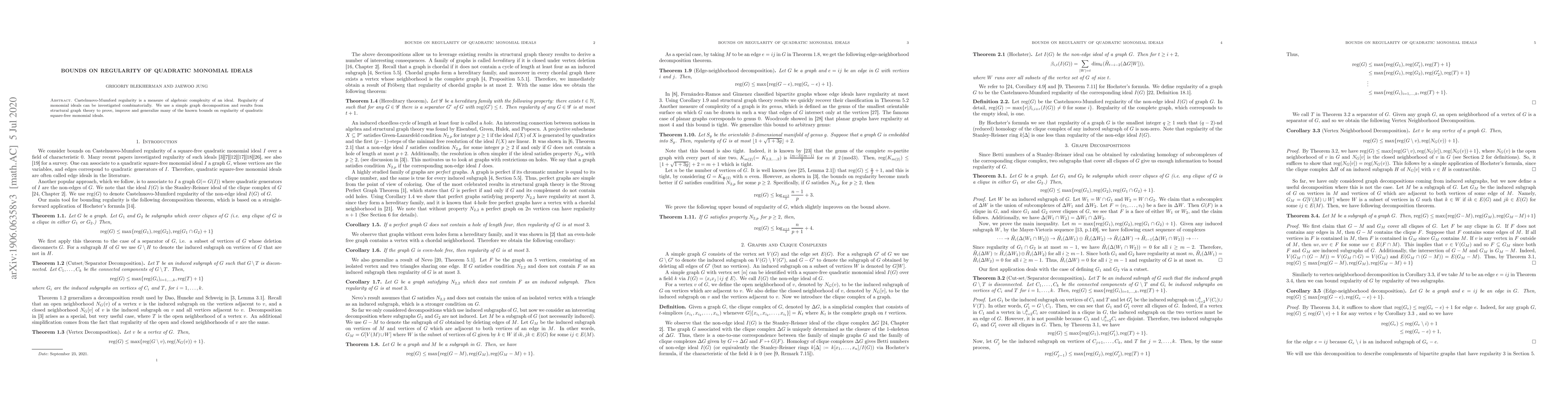 Castelnuovo-Mumford regularity is a measure of algebraic complexity of an ideal. Regularity of monomial ideals can be investigated combinatorially. We use a simple graph decomposition and results from structural graph theory to prove, improve and generalize many of the known bounds on regularity of quadratic square-free monomial ideals.