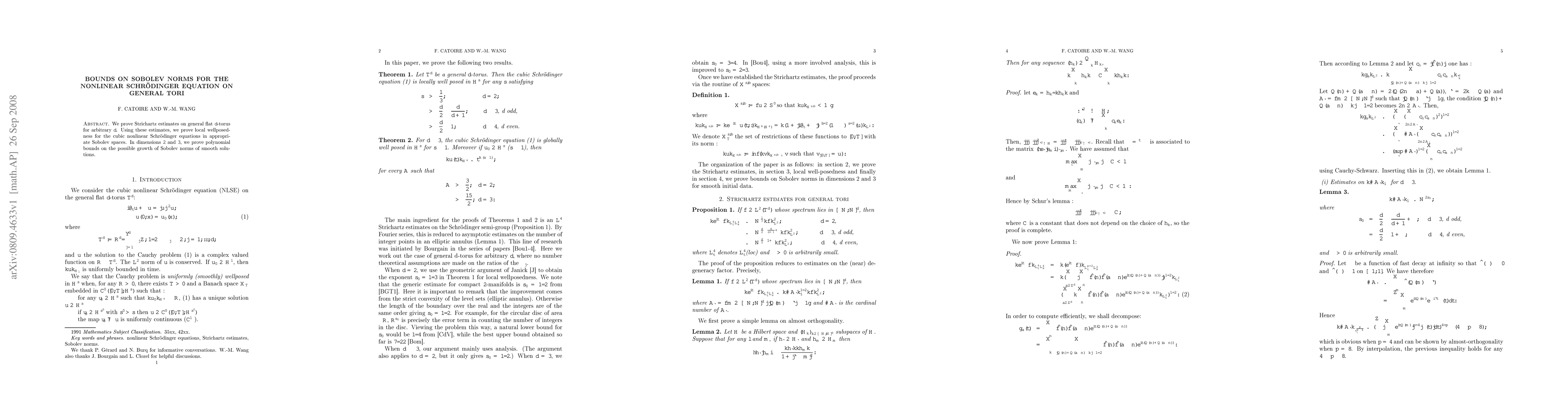 This paper establishes Strichartz estimates on a general d-torus and uses these to prove local wellposedness for cubic nonlinear Schrödinger equations in suitable Sobolev spaces. For dimensions 2 and 3, it demonstrates polynomial bounds on the growth of Sobolev norms of smooth solutions.