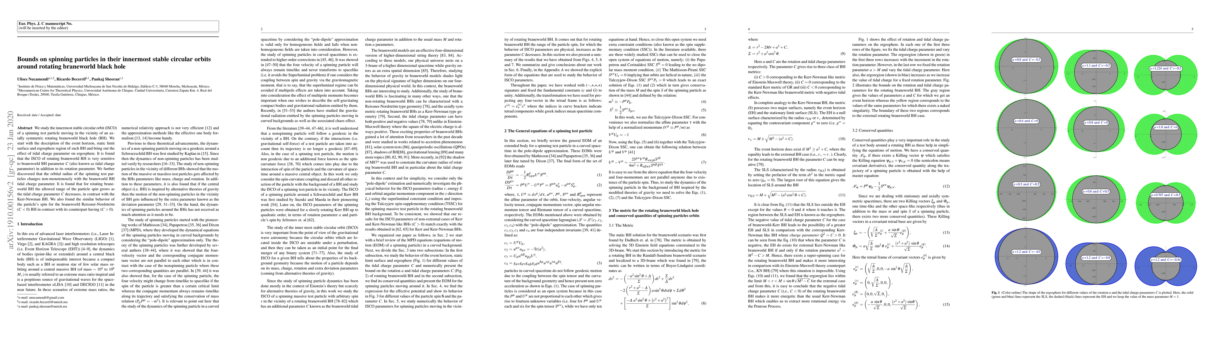 This paper investigates the innermost stable circular orbits of spinning particles around a rotating braneworld black hole, revealing that the orbital radius varies non-monotonically with the tidal charge parameter. The study shows that the allowed range of particle spin increases with decreasing tidal charge parameter, contrasting with the behavior in Kerr-Newman black holes.