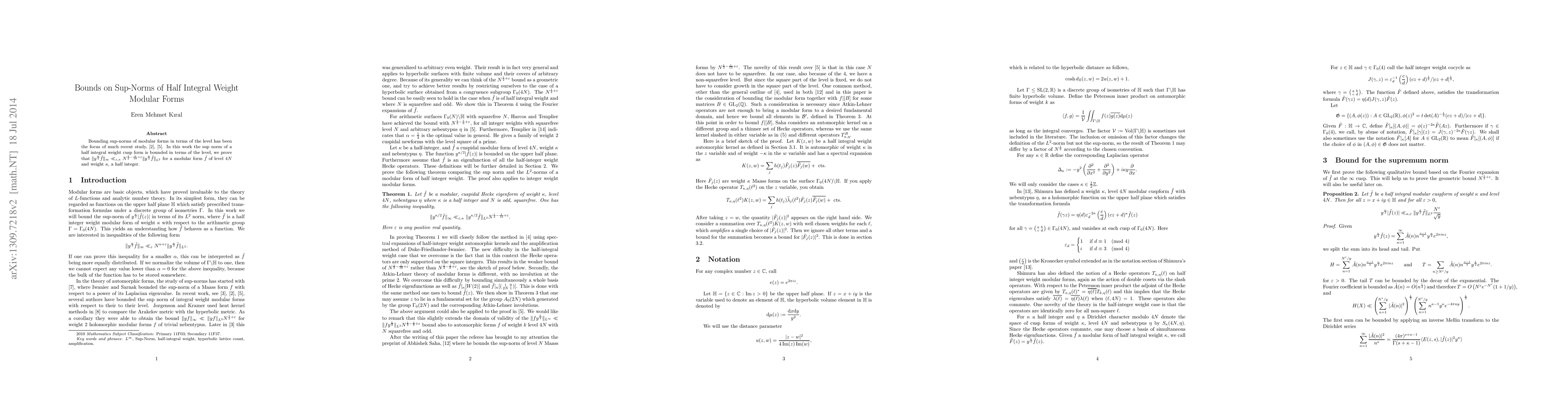 This paper establishes bounds for the sup-norms of half-integral weight cusp forms, relating these norms to the level of the modular forms. The results contribute to the ongoing study of the relationship between the level and the sup-norms of modular forms.