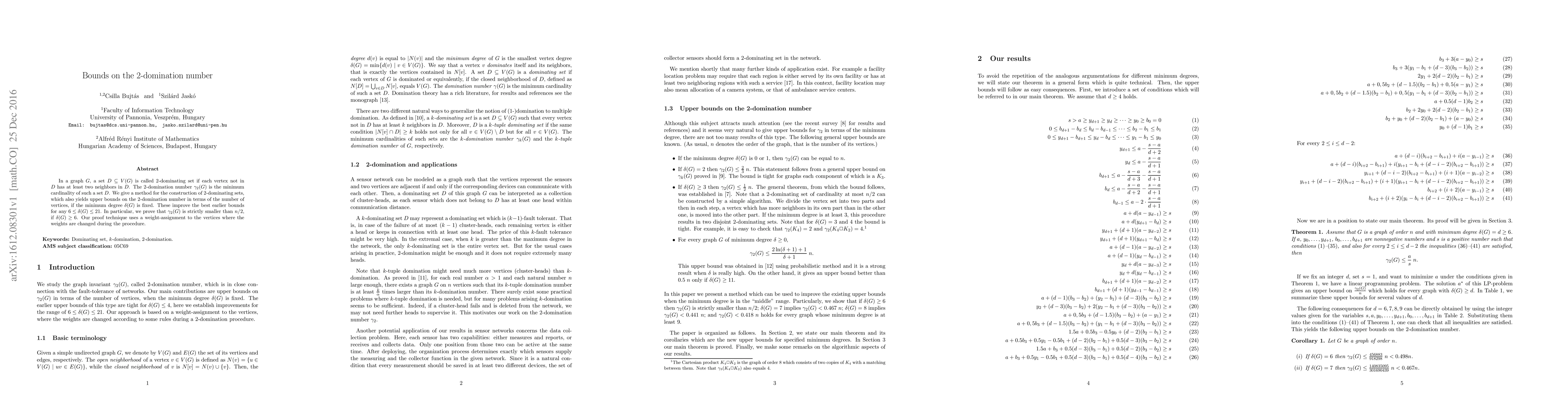 In a graph $G$, a set $D\subseteq V(G)$ is called 2-dominating set if each vertex not in $D$ has at least two neighbors in $D$. The 2-domination number $\gamma_2(G)$ is the minimum cardinality of such a set $D$. We give a method for the construction of 2-dominating sets, which also yields upper bounds on the 2-domination number in terms of the number of vertices, if the minimum degree $\delta(G)$ is fixed. These improve the best earlier bounds for any $6 \le \delta(G) \le 21$. In particular, we prove that $\gamma_2(G)$ is strictly smaller than $n/2$, if $\delta(G) \ge 6$. Our proof technique uses a weight-assignment to the vertices where the weights are changed during the procedure.