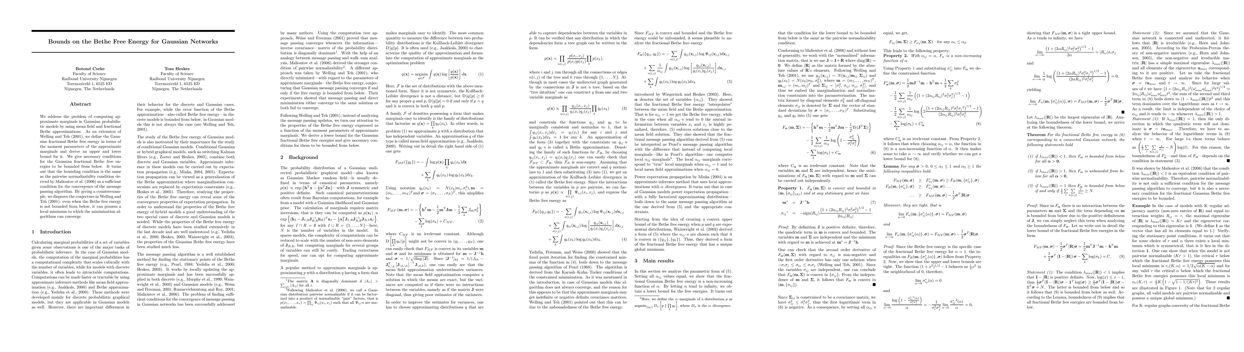 We address the problem of computing approximate marginals in Gaussian probabilistic models by using mean field and fractional Bethe approximations. As an extension of Welling and Teh (2001), we define the Gaussian fractional Bethe free energy in terms of the moment parameters of the approximate marginals and derive an upper and lower bound for it. We give necessary conditions for the Gaussian fractional Bethe free energies to be bounded from below. It turns out that the bounding condition is the same as the pairwise normalizability condition derived by Malioutov et al. (2006) as a sufficient condition for the convergence of the message passing algorithm. By giving a counterexample, we disprove the conjecture in Welling and Teh (2001): even when the Bethe free energy is not bounded from below, it can possess a local minimum to which the minimization algorithms can converge.