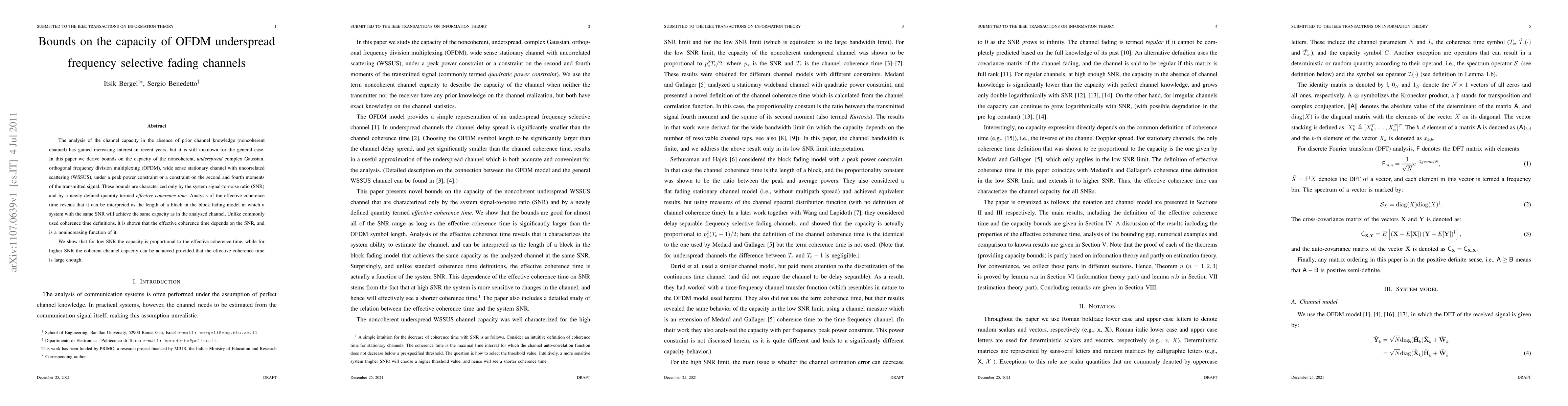 This paper derives bounds on the capacity of noncoherent, underspread frequency selective fading channels for OFDM systems under peak power or moment constraints. It introduces a new concept, effective coherence time, which depends on SNR and allows for capacity comparisons to a block fading model.