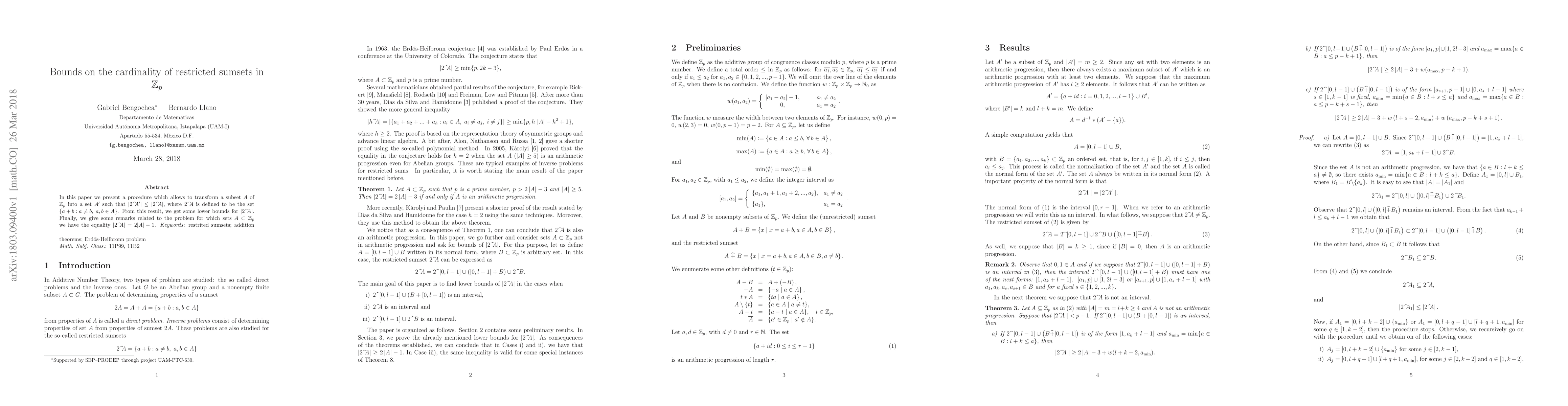 Researchers develop a procedure to transform subsets of integers in modular arithmetic to bound the size of their sumsets, leading to new insights into the distribution of sums.