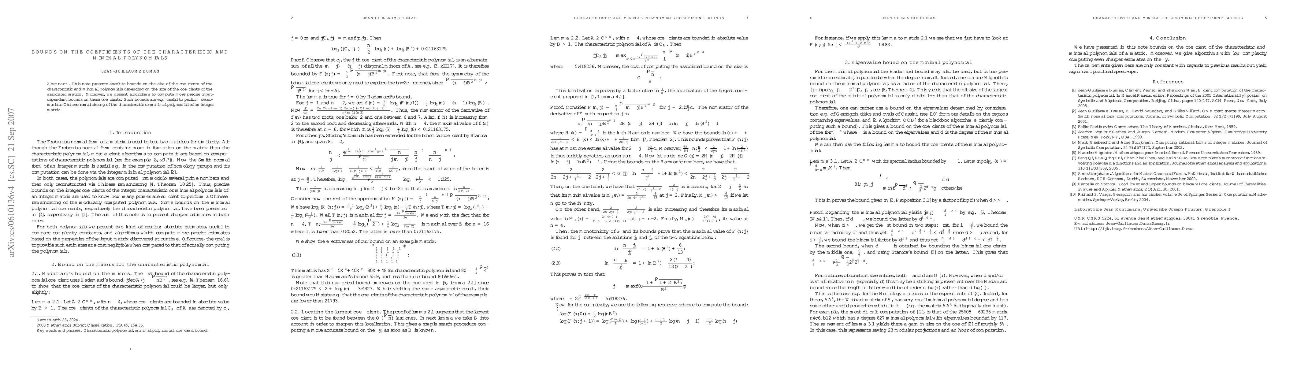 This paper sets absolute bounds on the coefficients of characteristic and minimal polynomials based on the size of their associated matrix coefficients, offering a new tool for deterministic Chinese remaindering.