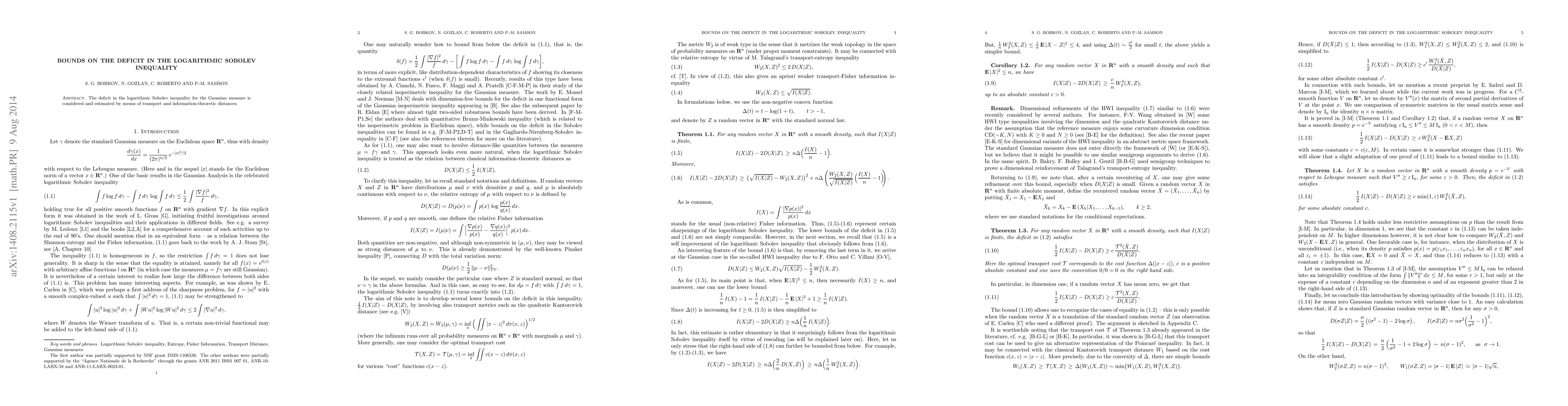 The de cit in the logarithmic Sobolev inequality for the Gaussian measure is considered and estimated by means of transport and information-theoretic distances.