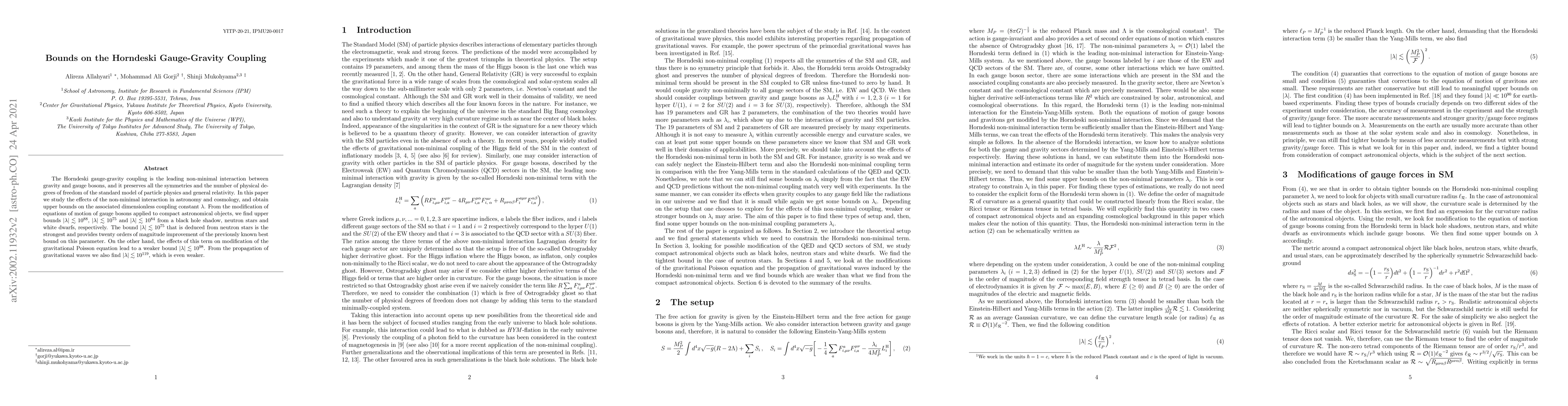 The Horndeski gauge-gravity coupling is the leading non-minimal interaction between gravity and gauge bosons, and it preserves all the symmetries and the number of physical degrees of freedom of the standard model of particle physics and general relativity. In this paper we study the effects of the non-minimal interaction in astronomy and cosmology, and obtain upper bounds on the associated dimensionless coupling constant $\lambda$. From the modification of equations of motion of gauge bosons applied to compact astronomical objects, we find upper bounds $|\lambda| \lesssim 10^{88}$, $|\lambda| \lesssim 10^{75}$ and $|\lambda| \lesssim 10^{84}$ from a black hole shadow, neutron stars and white dwarfs, respectively. The bound $|\lambda| \lesssim 10^{75}$ that is deduced from neutron stars is the strongest and provides twenty orders of magnitude improvement of the previously known best bound on this parameter. On the other hand, the effects of this term on modification of the gravitational Poisson equation lead to a weaker bound $|\lambda| \lesssim 10^{98}$. From the propagation of gravitational waves we also find $|\lambda| \lesssim 10^{119}$, which is even weaker.