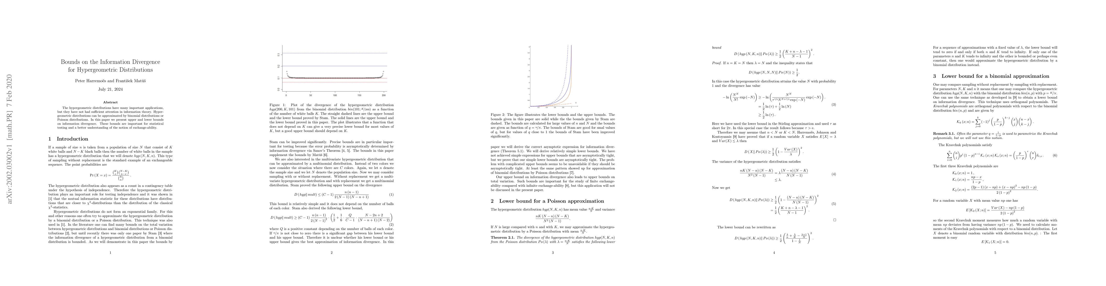 The hypergeometric distributions have many important applications, but they have not had sufficient attention in information theory. Hypergeometric distributions can be approximated by binomial distributions or Poisson distributions. In this paper we present upper and lower bounds on information divergence. These bounds are important for statistical testing and a better understanding of the notion of exchange-ability.