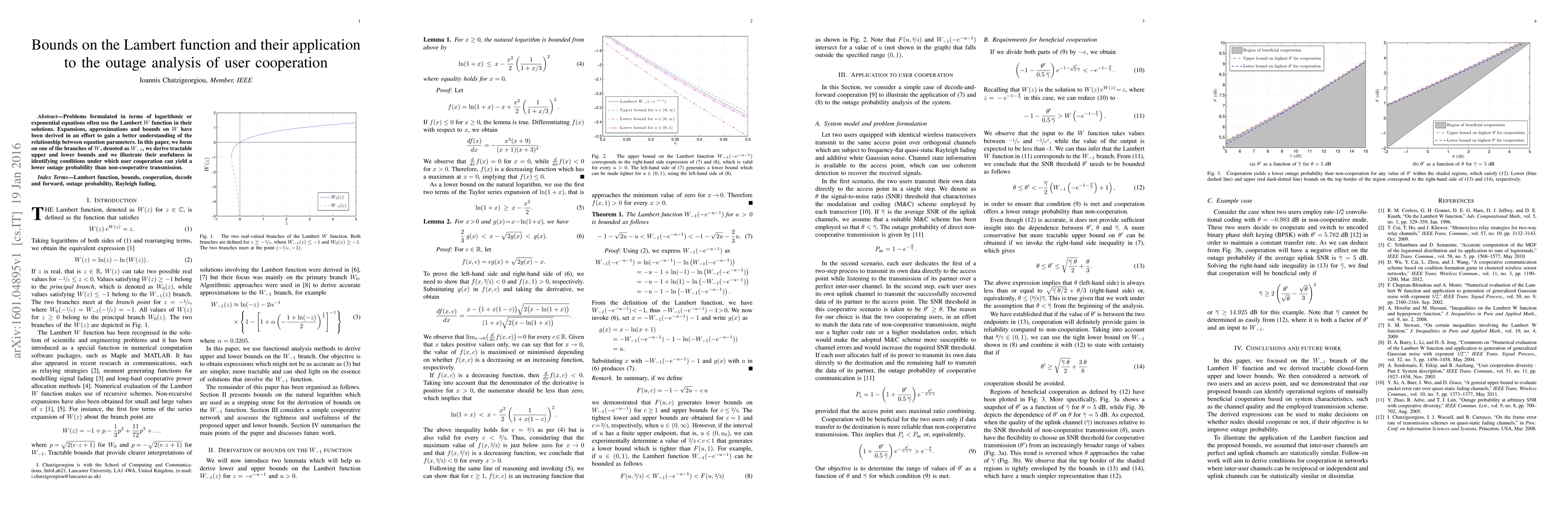 The paper presents a novel approach using functional analysis to derive tractable bounds on the Lambert W−1 branch, which can be applied to outage probability analysis in cooperative communication systems.