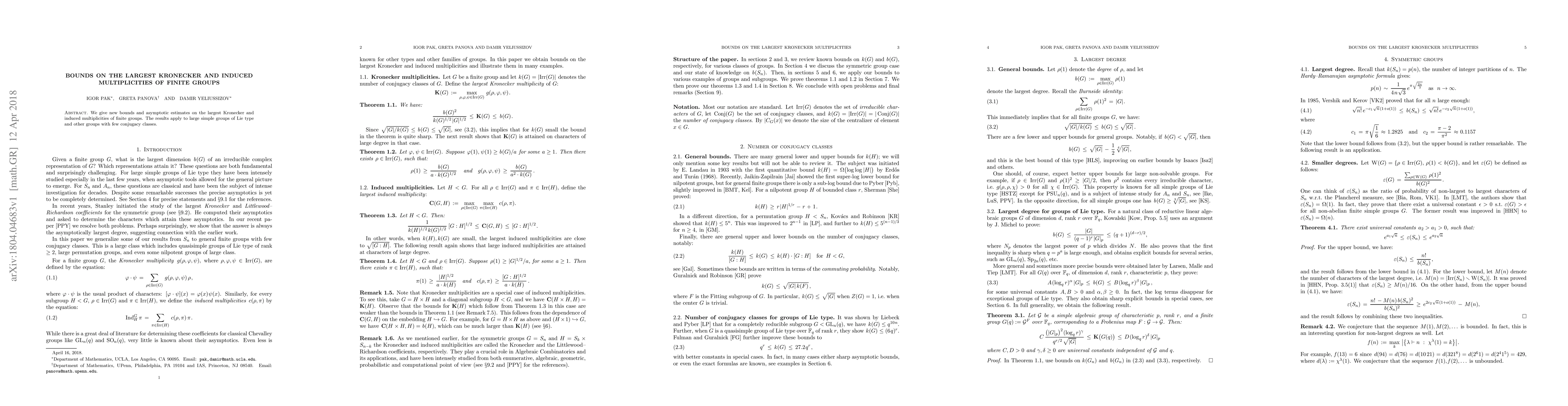 We give new bounds and asymptotic estimates on the largest Kronecker and induced multiplicities of finite groups. The results apply to large simple groups of Lie type and other groups with few conjugacy classes.