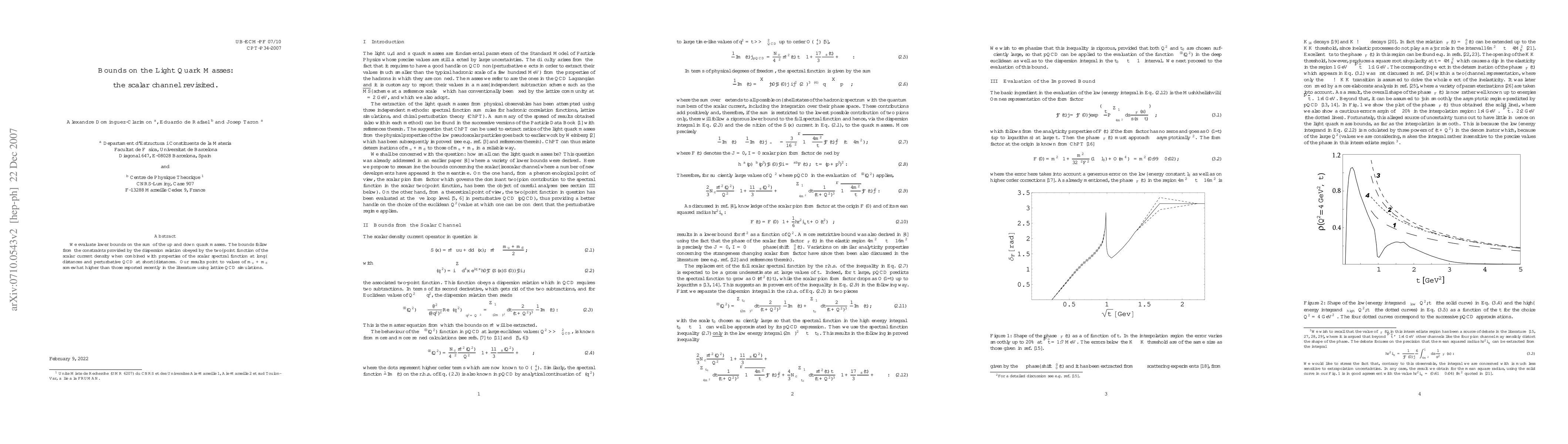 This paper evaluates lower bounds on the sum of up and down quark masses using dispersion relations and perturbative QCD, finding values higher than recent lattice QCD estimates. The results are derived from the constraints of the scalar channel's two-point function and spectral properties.