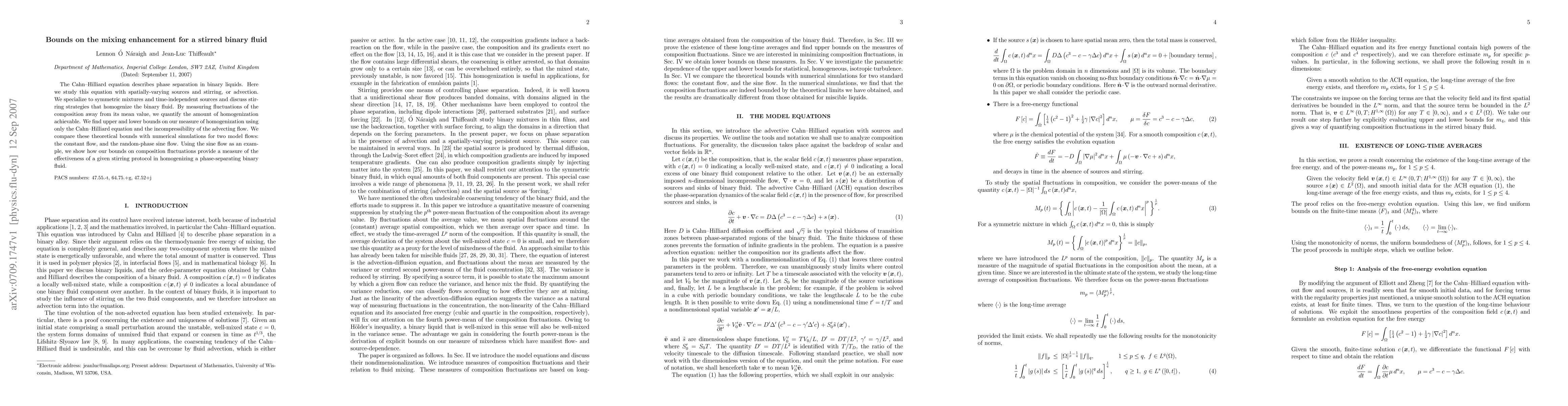 The Cahn-Hilliard equation describes phase separation in binary liquids. Here we study this equation with spatially-varying sources and stirring, or advection. We specialize to symmetric mixtures and time-independent sources and discuss stirring strategies that homogenize the binary fluid. By measuring fluctuations of the composition away from its mean value, we quantify the amount of homogenization achievable. We find upper and lower bounds on our measure of homogenization using only the Cahn-Hilliard equation and the incompressibility of the advecting flow. We compare these theoretical bounds with numerical simulations for two model flows: the constant flow, and the random-phase sine flow. Using the sine flow as an example, we show how our bounds on composition fluctuations provide a measure of the effectiveness of a given stirring protocol in homogenizing a phase-separating binary fluid.