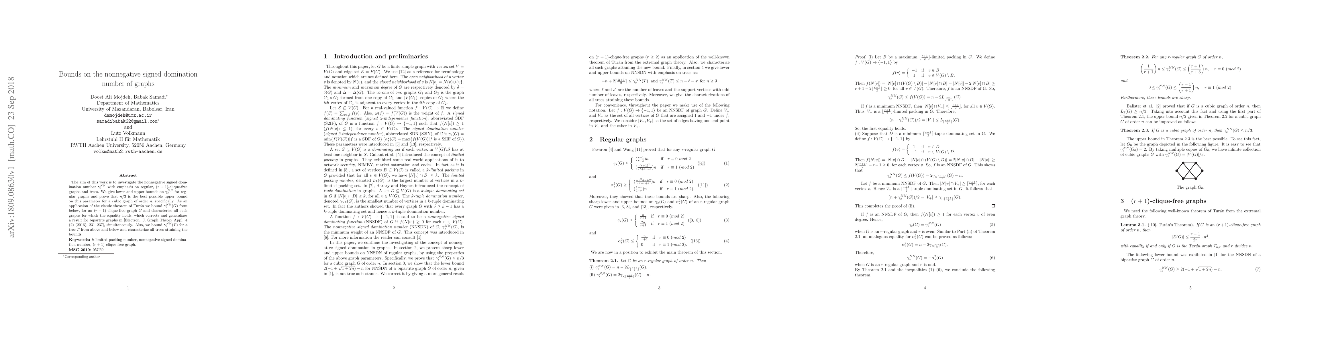 The work extends previous research by providing sharper bounds for regular graphs, particularly cubic graphs, and generalizes results for \((r+1)\-clique-free graphs, offering a more comprehensive analysis of graph domination under nonnegative signed conditions.