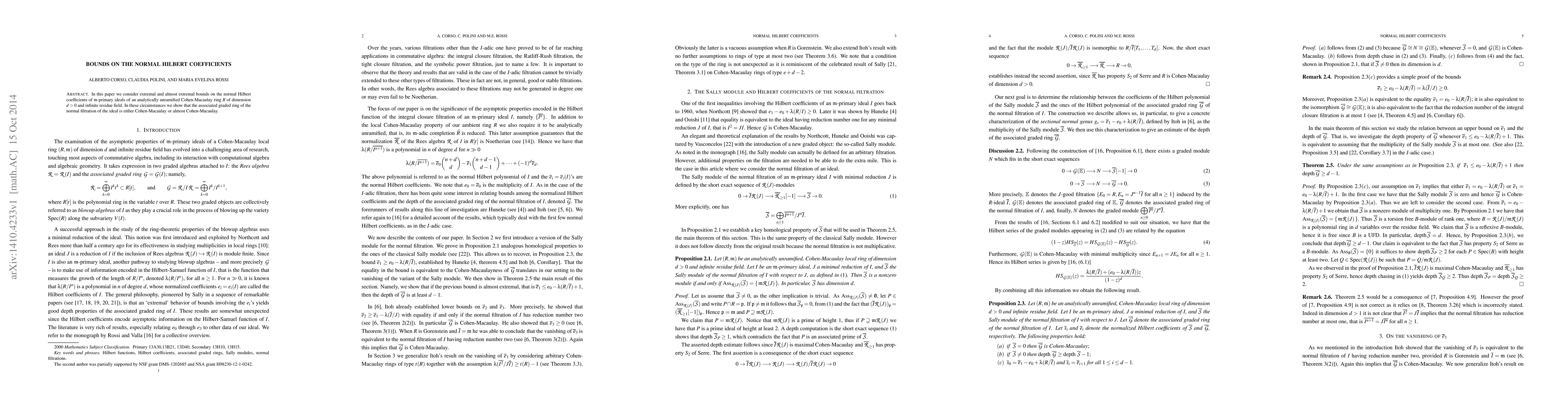 This paper establishes extremal and near-extremal bounds for the normal Hilbert coefficients of ${\mathfrak m}$-primary ideals in analytically unramified Cohen-Macaulay rings, showing the associated graded ring is either Cohen-Macaulay or almost Cohen-Macaulay.
