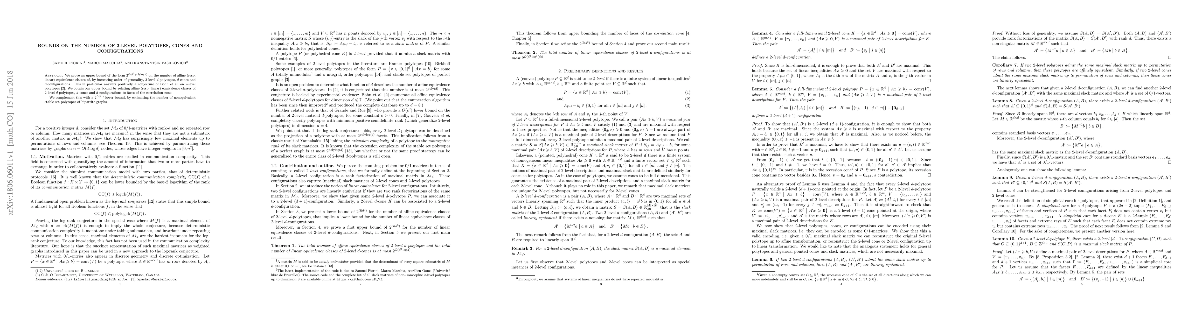 This paper establishes an upper bound of $2^{O(d^2 \mathrm{polylog}\,d)}$ on the number of affine equivalence classes of 2-level d-polytopes, d-cones, and d-configurations, thereby confirming a conjecture by Bohn et al. The authors achieve this by linking these classes to the faces of the correlation cone, and they also provide a lower bound of $2^{\Omega(d^2)}$ using stable set polytopes of bipartite graphs.