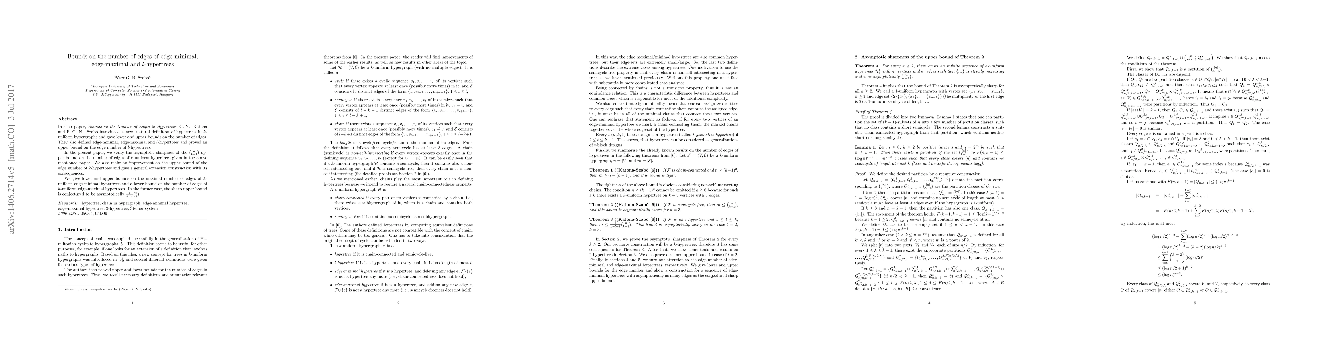 In their paper, Bounds on the Number of Edges in Hypertrees, G.Y. Katona and P.G.N. Szab\'o introduced a new, natural definition of hypertrees in $k$-uniform hypergraphs and gave lower and upper bounds on the number of edges. They also defined edge-minimal, edge-maximal and $l$-hypertrees and proved an upper bound on the edge number of $l$-hypertrees. In the present paper, we verify the asymptotic sharpness of the $\binom{n}{k-1}$ upper bound on the number of edges of $k$-uniform hypertrees given in the above mentioned paper. We also make an improvement on the upper bound of the edge number of $2$-hypertrees and give a general extension construction with its consequences. We give lower and upper bounds on the maximal number of edges of $k$-uniform edge-minimal hypertrees and a lower bound on the number of edges of $k$-uniform edge-maximal hypertrees. In the former case, the sharp upper bound is conjectured to be asymptotically $\frac{1}{k-1}\binom{n}{2}$.