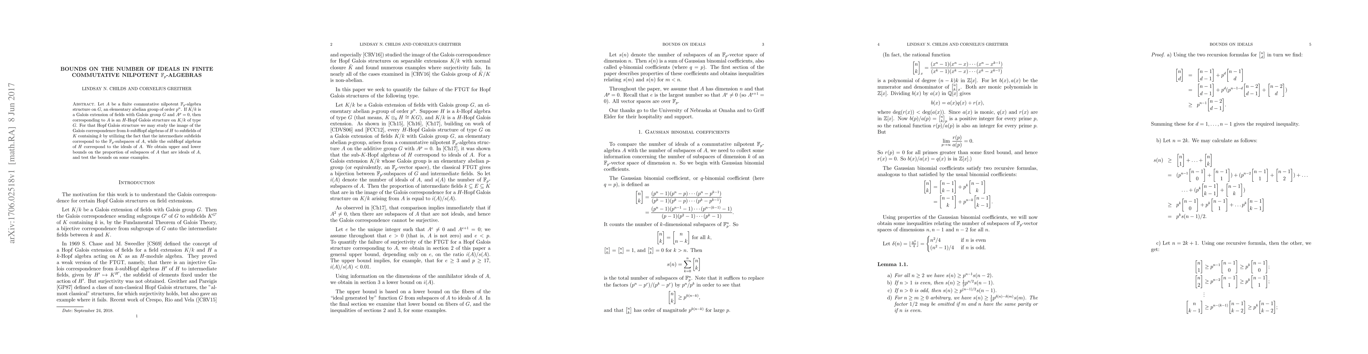 This paper establishes upper and lower bounds on the number of ideals in finite commutative nilpotent $\mathbb{F}_p$-algebras $A$ derived from Galois extensions, analyzing the relationship between $\mathbb{F}_p$-subspaces of $A$ and its subHopf algebras.
