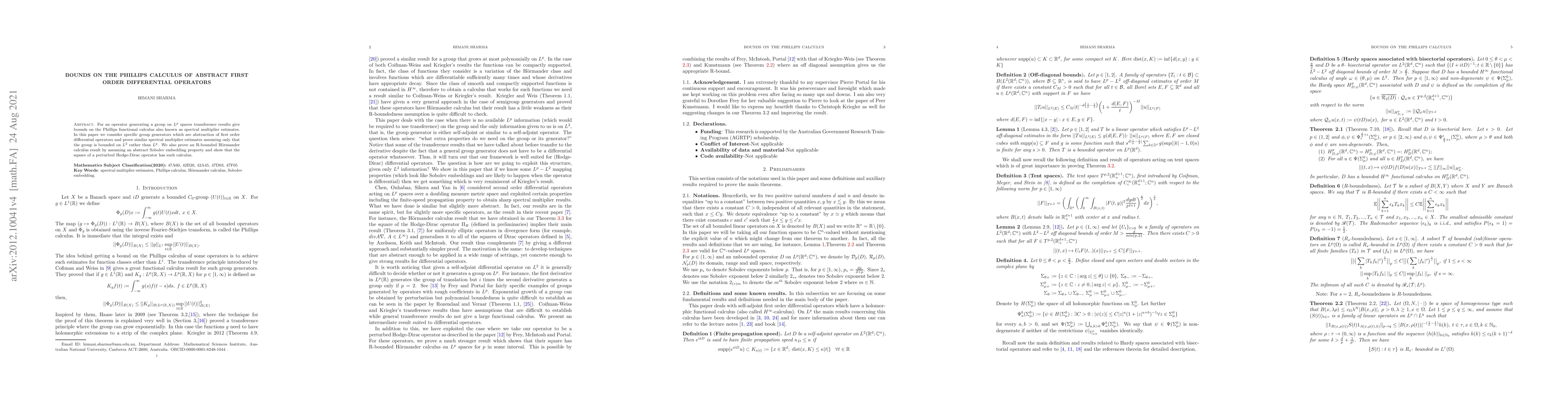 For an operator generating a group on $L^p$ spaces transference results give bounds on the Phillips functional calculus also known as spectral multiplier estimates. In this paper we consider specific group generators which are abstraction of first order differential operators and prove similar spectral multiplier estimates assuming only that the group is bounded on $L^2$ rather than $L^p$. We also prove an R-bounded H\"ormander calculus result by assuming an abstract Sobolev embedding property and show that the square of a perturbed Hodge-Dirac operator has such calculus.