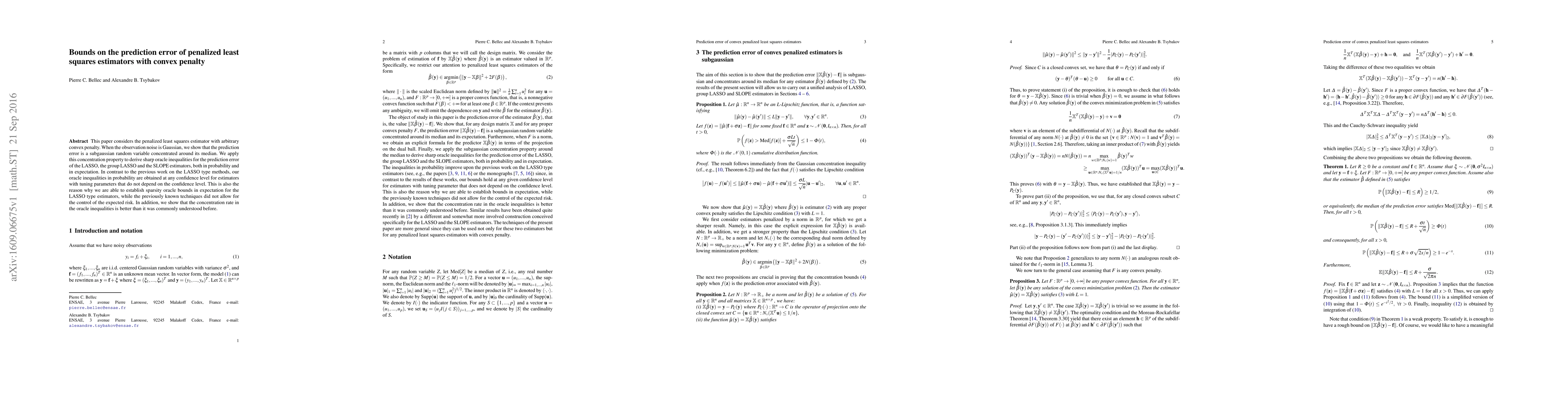 This paper establishes sharp oracle inequalities for prediction error in penalized least squares estimators with convex penalties, showing that the prediction error is subgaussian around its median. It provides improved concentration rates and sparsity bounds for LASSO, group LASSO, and SLOPE estimators, independent of the confidence level.