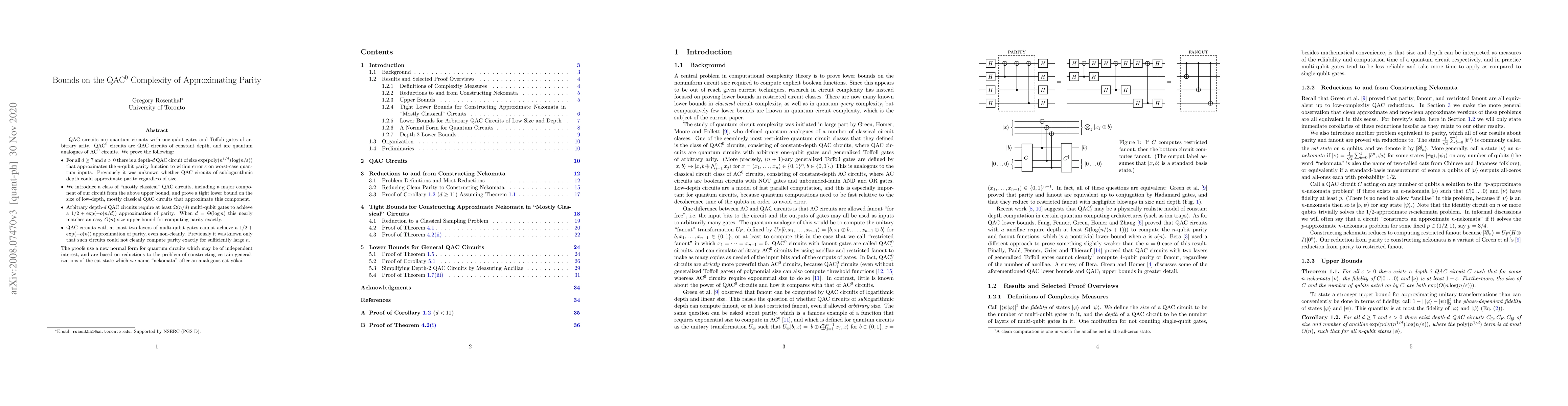 The paper introduces a new normal form for quantum circuits and proves upper and lower bounds on the complexity of approximating parity in QAC^0 circuits, demonstrating the necessity of multi-qubit gates for achieving certain approximation levels.