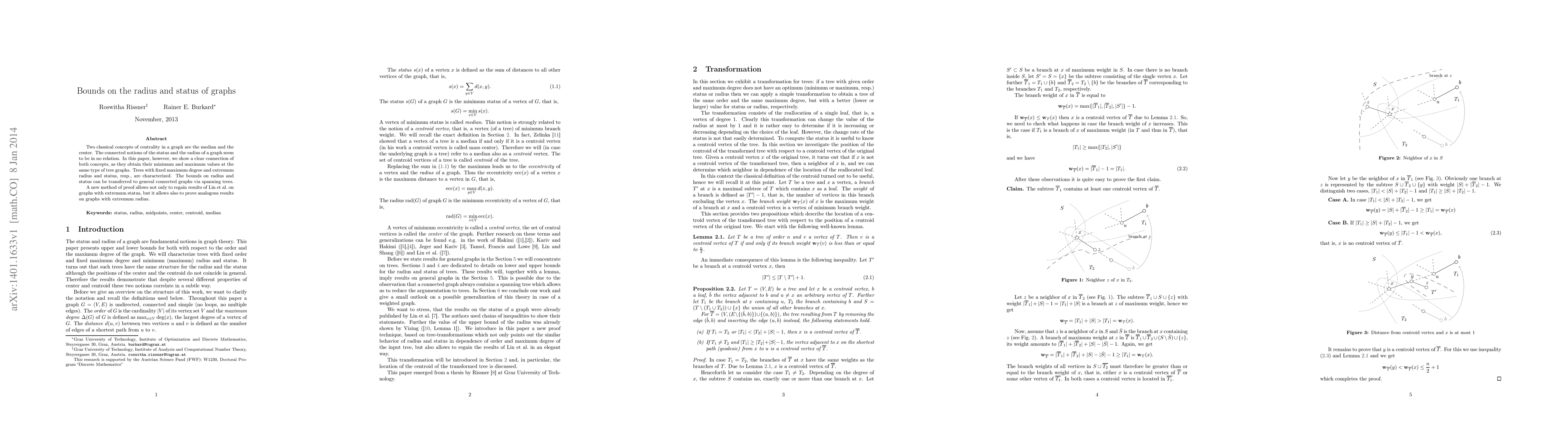 Two classical concepts of centrality in a graph are the median and the center. The connected notions of the status and the radius of a graph seem to be in no relation. In this paper, however, we show a clear connection of both concepts, as they obtain their minimum and maximum values at the same type of tree graphs. Trees with fixed maximum degree and extremum radius and status, resp., are characterized. The bounds on radius and status can be transferred to general connected graphs via spanning trees. A new method of proof allows not only to regain results of Lin et al. on graphs with extremum status, but it allows also to prove analogous results on graphs with extremum radius.