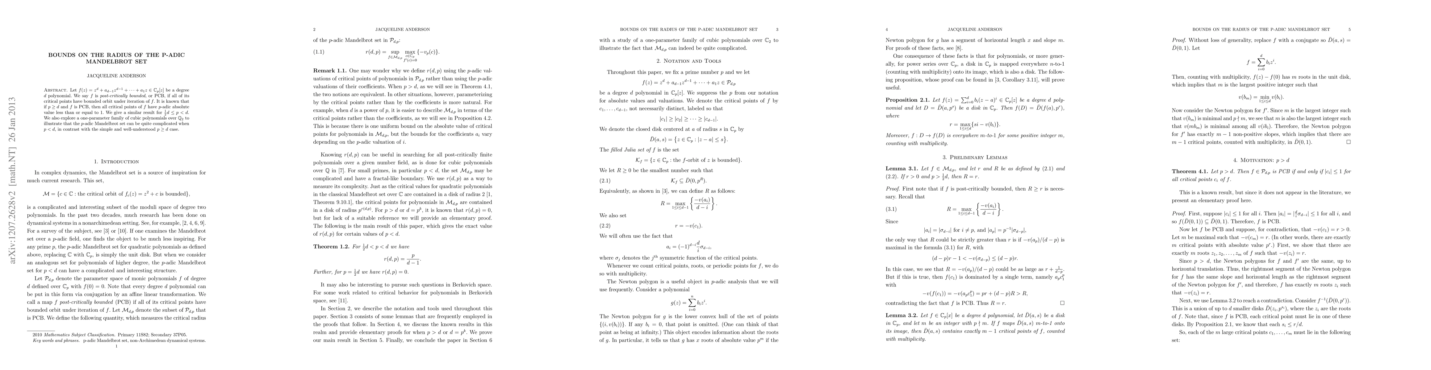 This paper establishes bounds on the radius of the p-adic Mandelbrot set for polynomials defined over the p-adic field C_p, showing that for primes between d/2 and d, all critical points have p-adic absolute values less than or equal to 1. It also examines a one-parameter family of cubic polynomials over the 2-adic numbers to demonstrate the complexity of the p-adic Mandelbrot set when p is less than the degree d.