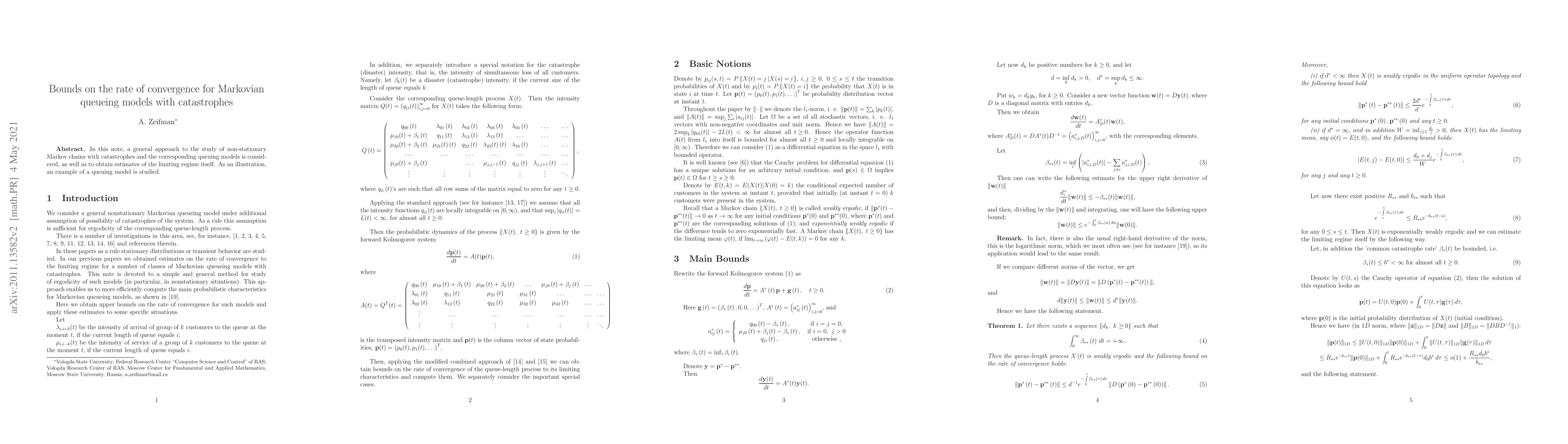 This paper establishes bounds on the rate of convergence for Markovian queueing models with catastrophes, providing insights into non-stationary systems.