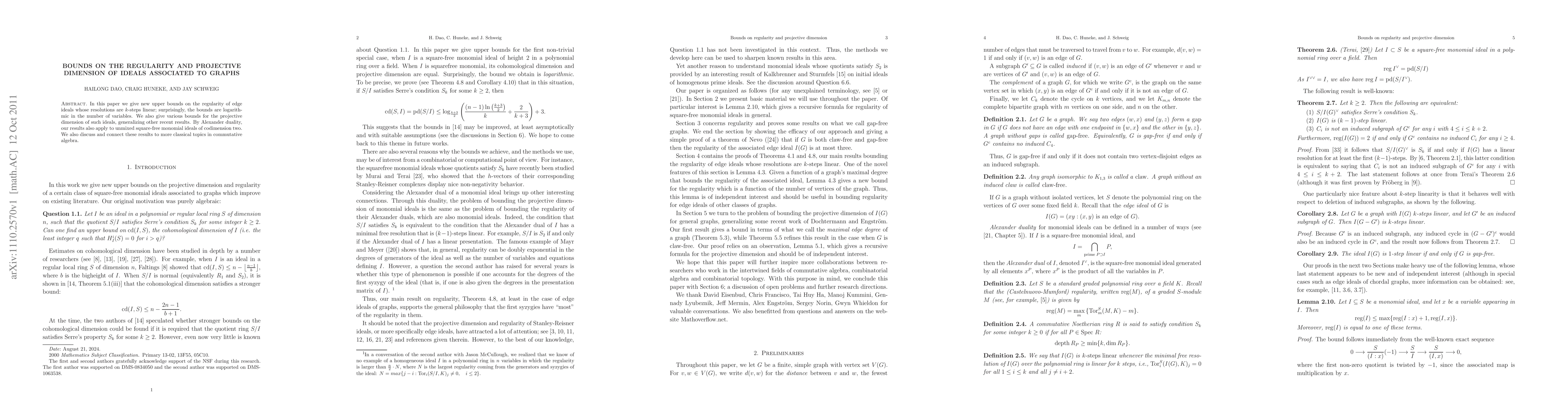 Researchers have established new upper bounds for the regularity and projective dimension of ideals associated with graphs, achieving logarithmic growth in variables.