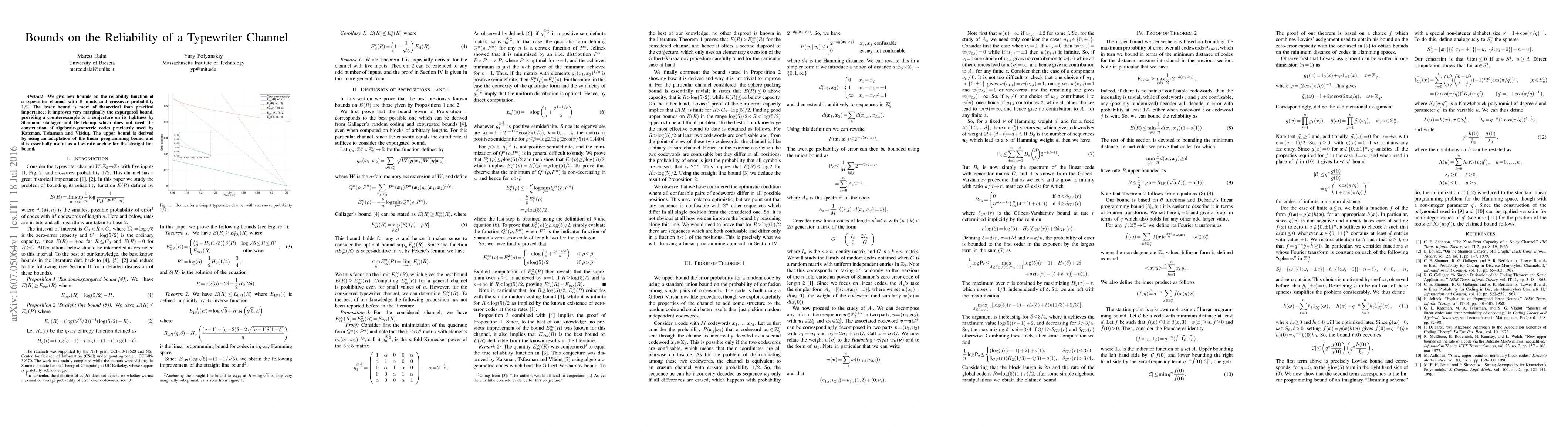 The findings offer insights into the reliability function of the channel, improving our understanding of information transmission over noisy channels.