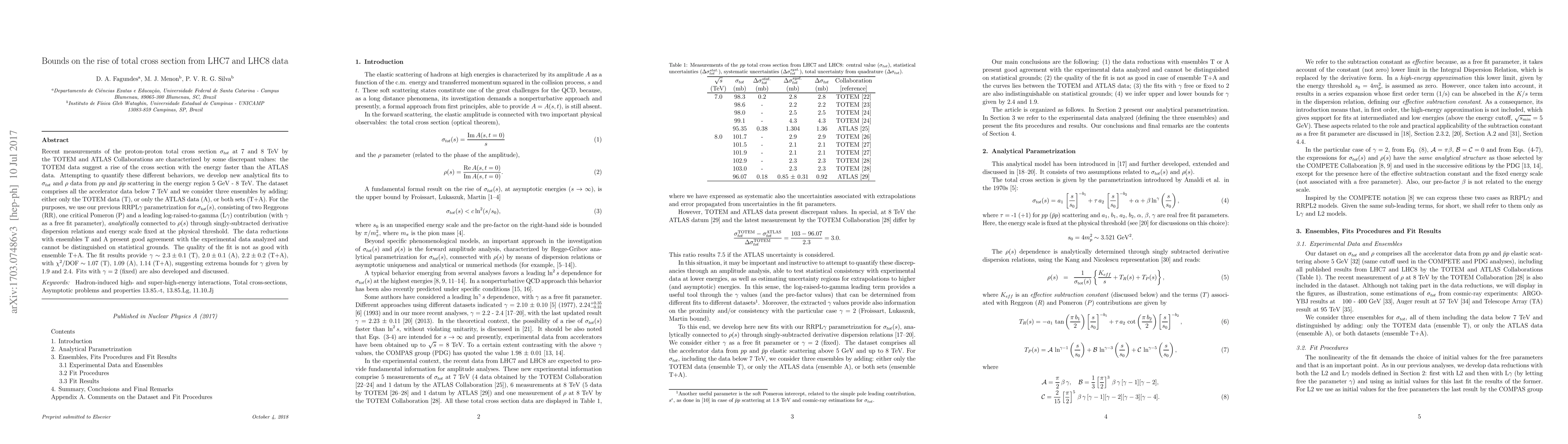 Recent measurements of the proton-proton total cross section $\sigma_{tot}$ at 7 and 8 TeV by the TOTEM and ATLAS Collaborations are characterized by some discrepant values: the TOTEM data suggest a rise of the cross section with the energy faster than the ATLAS data. Attempting to quantify these different behaviors, we develop new analytical fits to $\sigma_{tot}$ and $\rho$ data from $pp$ and $\bar{p}p$ scattering in the energy region 5 GeV - 8 TeV. The dataset comprises all the accelerator data below 7 TeV and we consider three ensembles by adding: either only the TOTEM data (T), or only the ATLAS data (A), or both sets (T+A). For the purposes, we use our previous RRPL$\gamma$ parametrization for $\sigma_{tot}(s)$, consisting of two Reggeons (RR), one critical Pomeron (P) and a leading log-raised-to-gamma (L$\gamma$) contribution (with $\gamma$ as a free fit parameter), analytically connected to $\rho(s)$ through singly-subtracted derivative dispersion relations and energy scale fixed at the physical threshold. The data reductions with ensembles T and A present good agreement with the experimental data analyzed and cannot be distinguished on statistical grounds. The quality of the fit is not as good with ensemble T+A. The fit results provide $\gamma \sim 2.3 \pm 0.1$ (T), $2.0 \pm 0.2$ (A), $2.1 \pm 0.2$ (T+A), with $\chi^2/\mathrm{DOF} \sim 1.07$ (T), $1.09$ (A), $1.14$ (T+A), suggesting extrema bounds for $\gamma$ given by 1.8 and 2.4. Fits with $\gamma = 2$ (fixed) are also developed and discussed.