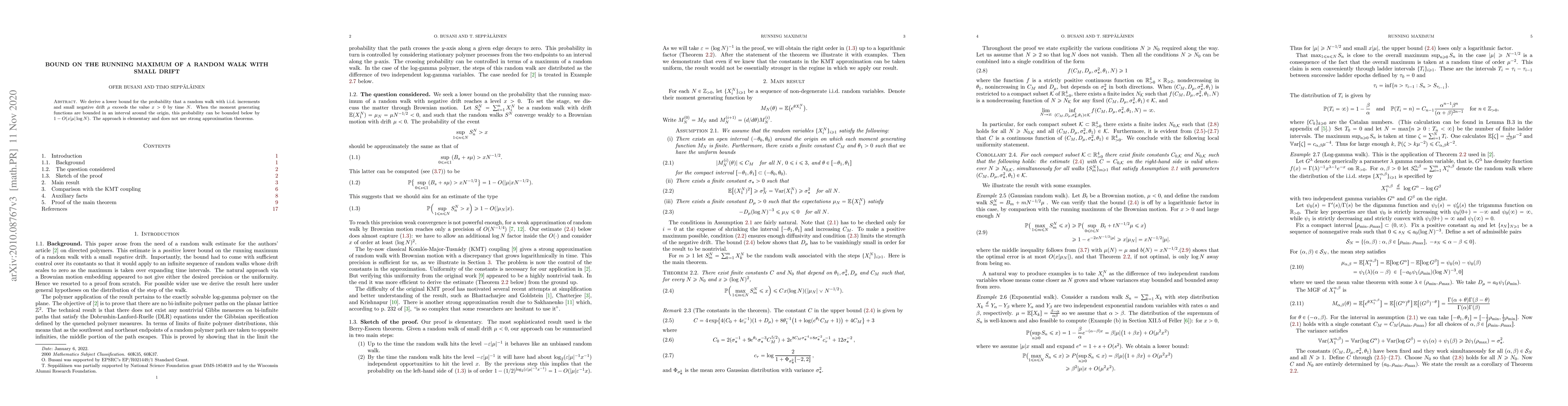 This paper establishes a lower bound for the probability that a random walk with small negative drift exceeds a given value by a certain time, showing that the probability is at least $1-O(x|\mu| \log N)$ when the moment generating functions are bounded. The method is straightforward and avoids complex theorems.