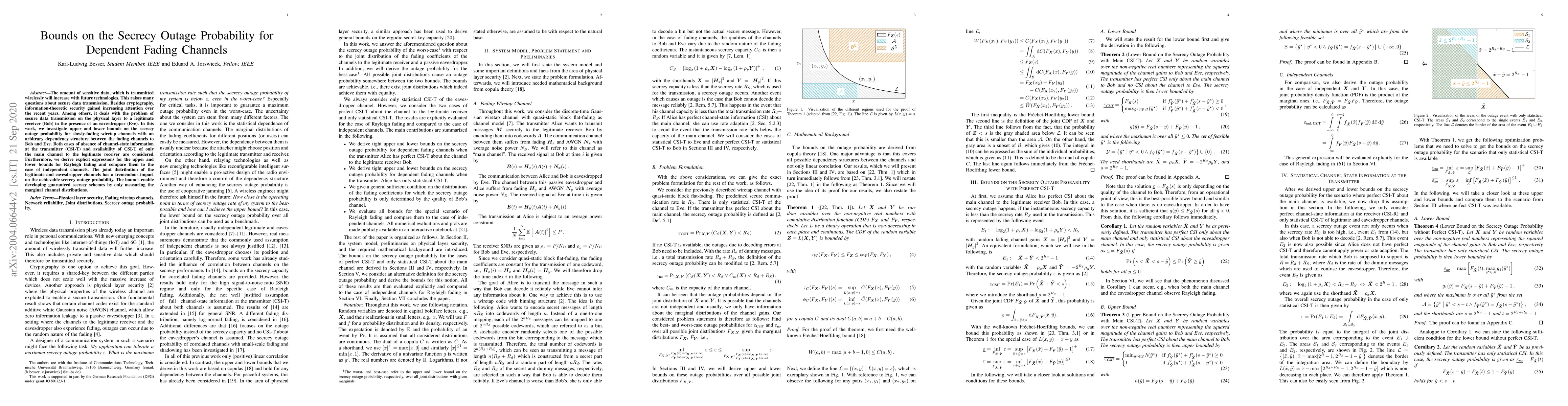 The amount of sensitive data, which is transmitted wirelessly will increase with future technologies. This raises many questions about secure data transmission. Besides cryptography, information-theoretic security gained increasing attention over the recent years. Among others, it deals with the problem of secure data transmission on the physical layer to a legitimate receiver (Bob) in the presence of an eavesdropper (Eve). In this work, we investigate upper and lower bounds on the secrecy outage probability for slowly-fading wiretap channels with an arbitrary dependency structure between the fading channels to Bob and Eve. Both cases of absence of channel-state information at the transmitter (CSI-T) and availability of CSI-T of only the main channel to the legitimate receiver are considered. Furthermore, we derive explicit expressions for the upper and lower bounds for Rayleigh fading and compare them to the case of independent channels. The joint distribution of the legitimate and eavesdropper channels has a tremendous impact on the achievable secrecy outage probability. The bounds enable developing guaranteed secrecy schemes by only measuring the marginal channel distributions.