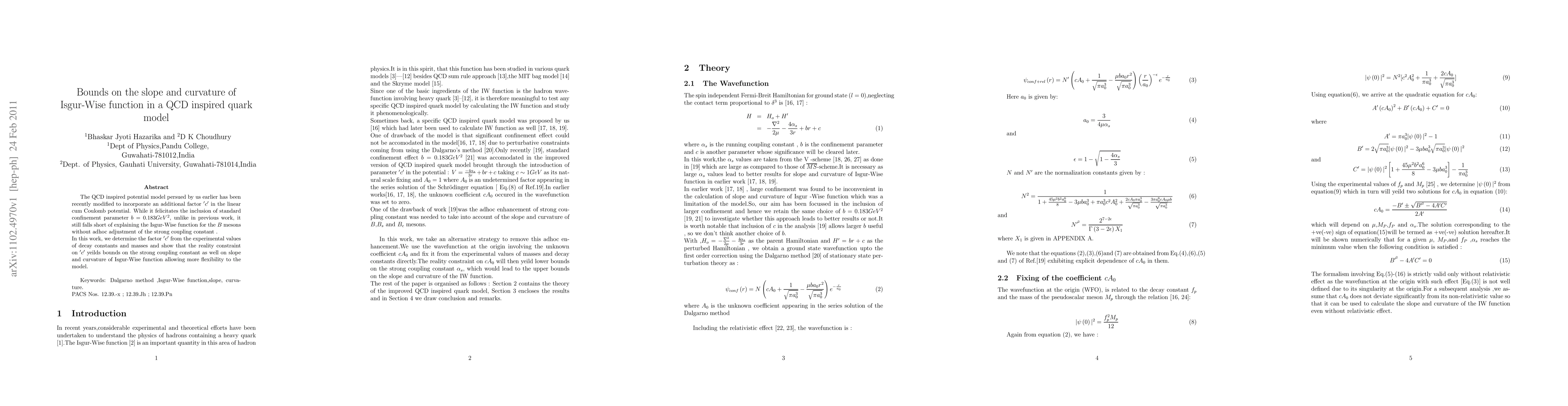 The QCD inspired potential model persued by us earlier has been recently modified to incorporate an additional factor 'c' in the linear cum Coulomb potential. While it felicitates the inclusion of standard confinement parameter b = 0.183GeV 2, unlike in previous work, it still falls short of explaining the Isgur-Wise function for the B mesons without adhoc adjustment of the strong coupling constant. In this work, we determine the factor 'c' from the experimental values of decay constants and masses and show that the reality constraint on 'c' yeilds bounds on the strong coupling constant as well on slope and curvature of Isgur-Wise function allowing more flexibility to the model.
