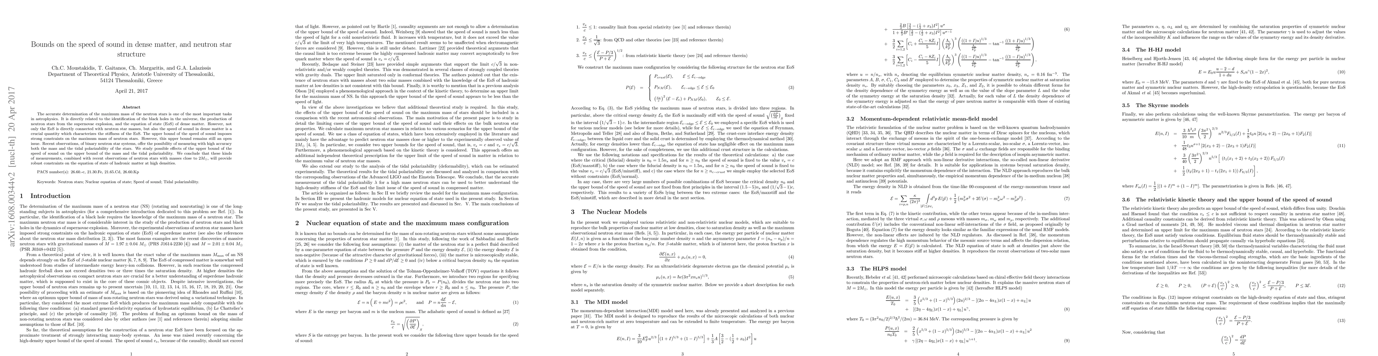 This paper investigates the relationship between the upper bound of the speed of sound in dense matter and the maximum mass of neutron stars, emphasizing the importance of these factors for understanding neutron star structure and the equation of state. It concludes that precise measurements of neutron star masses and tidal polarizability from binary systems can provide significant constraints on the equation of state of dense hadronic matter.