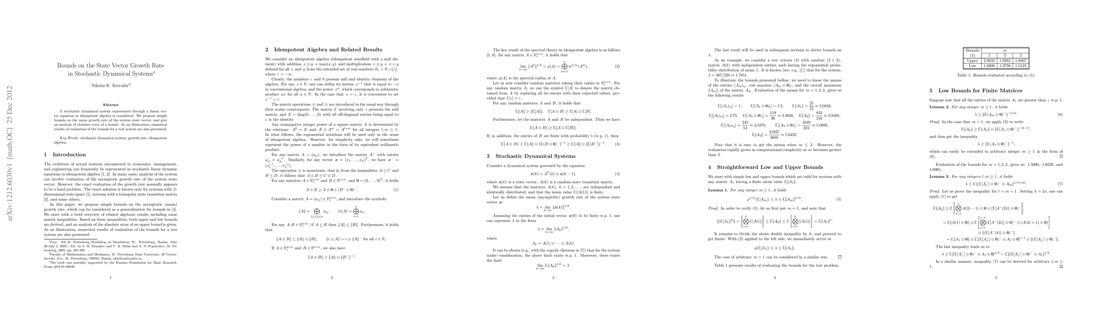 This research proposes bounds for the mean growth rate of state vectors in stochastic dynamical systems, described by linear vector equations in idempotent algebra. It also includes an error analysis and numerical results for a test system illustration.