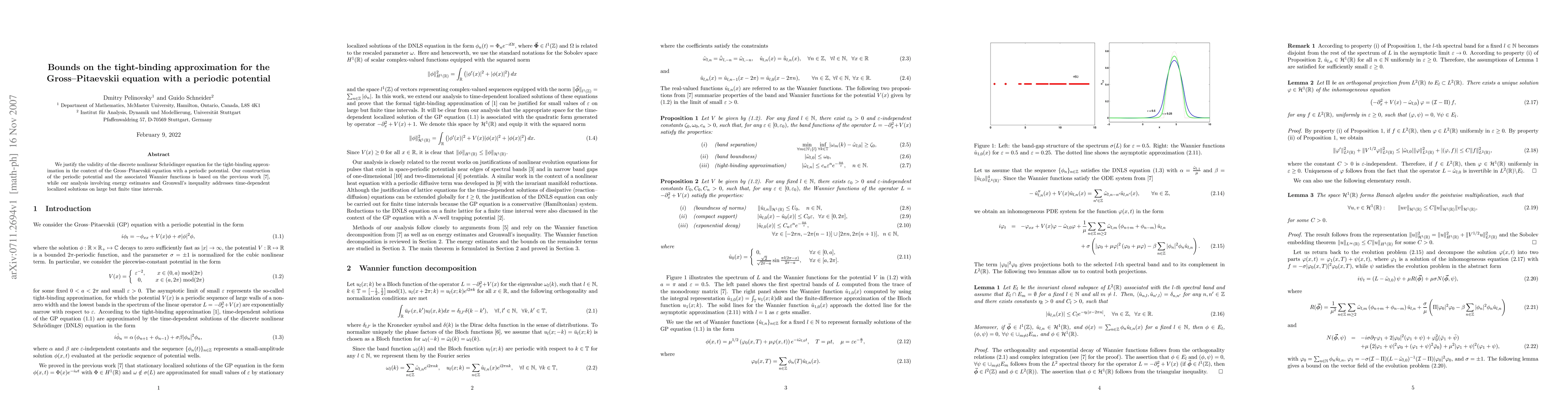 This paper justifies the discrete nonlinear Schrödinger equation for the tight-binding approximation of the Gross-Pitaevskii equation with a periodic potential, using energy estimates and Gronwall's inequality to analyze time-dependent localized solutions on finite time intervals. The construction of the periodic potential and Wannier functions builds on prior work.
