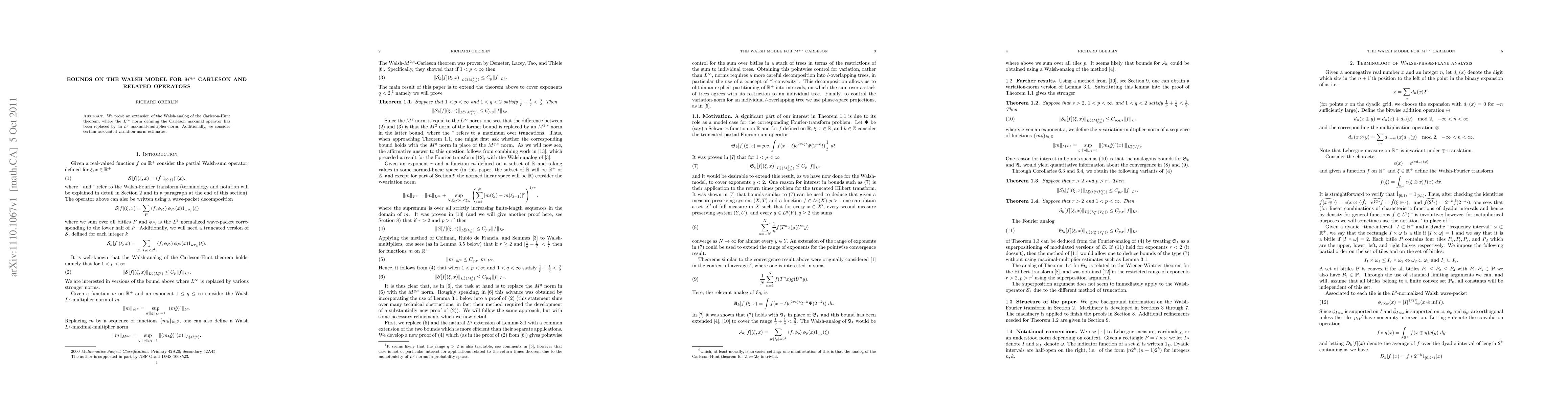 This paper extends the Walsh-analog of the Carleson-Hunt theorem by replacing the $L^\infty$ norm with an $L^q$ maximal-multiplier-norm and explores related variation-norm estimates for these operators.