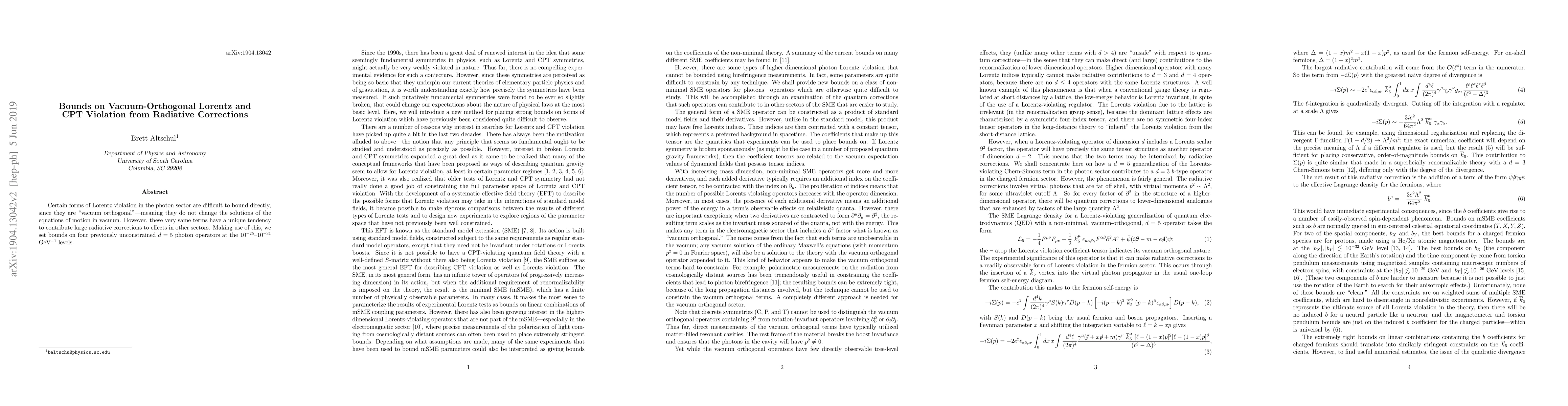 Researchers set bounds on four previously unconstrained photon operators, finding constraints at $10^{-25}$-$10^{-31}$ GeV$^{-1}$ levels, using radiative corrections to infer vacuum-orthogonal Lorentz violation.
