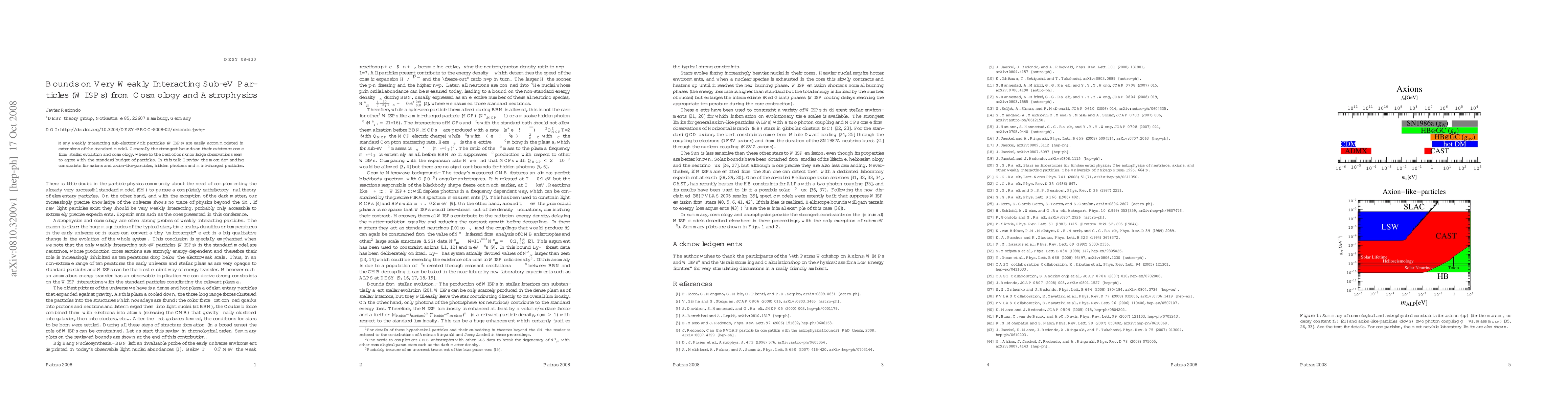 This paper reviews stringent constraints on sub-eV weakly interacting particles (WISPs) like axions, hidden photons, and mini-charged particles. These limits originate from cosmological and astrophysical observations, which so far align with the standard model particle content.