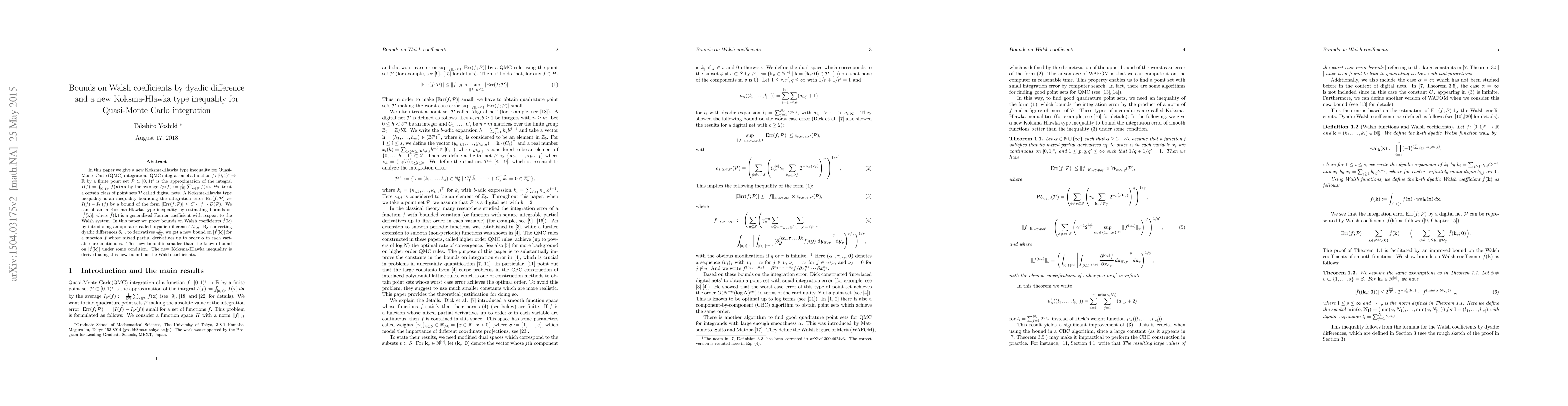 This paper introduces a new inequality for Quasi-Monte Carlo integration that uses dyadic differences to bound Walsh coefficients, leading to improved error estimates for certain types of functions.