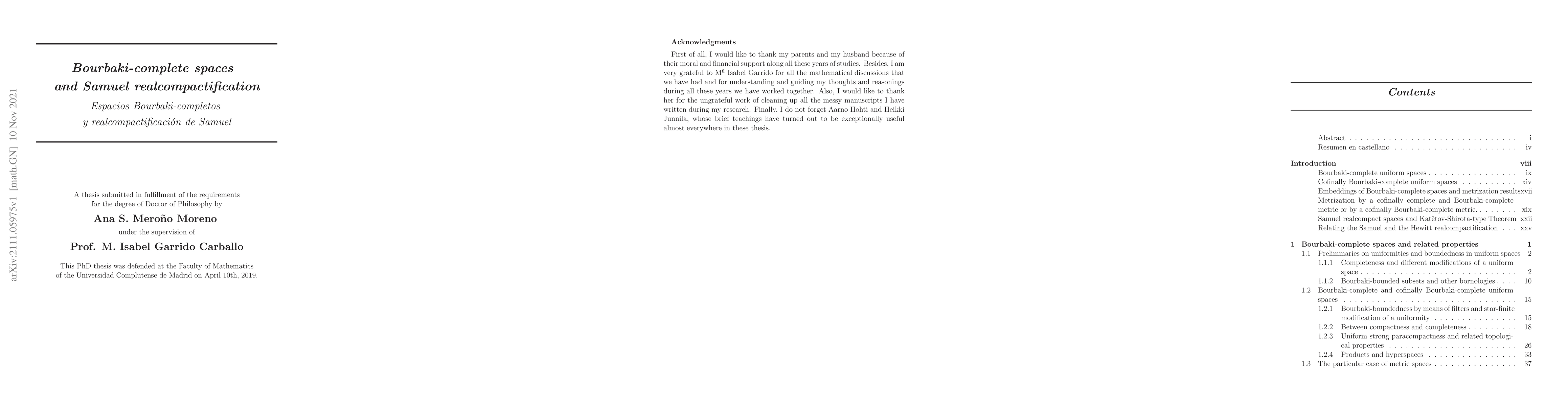 This research explores Bourbaki-completeness and Samuel realcompactification in uniform spaces, proving relationships between uniform strong-paracompactness and completeness. It characterizes spaces metrizable by Bourbaki-complete metrics and investigates the equivalence between Samuel and Hewitt realcompactifications.