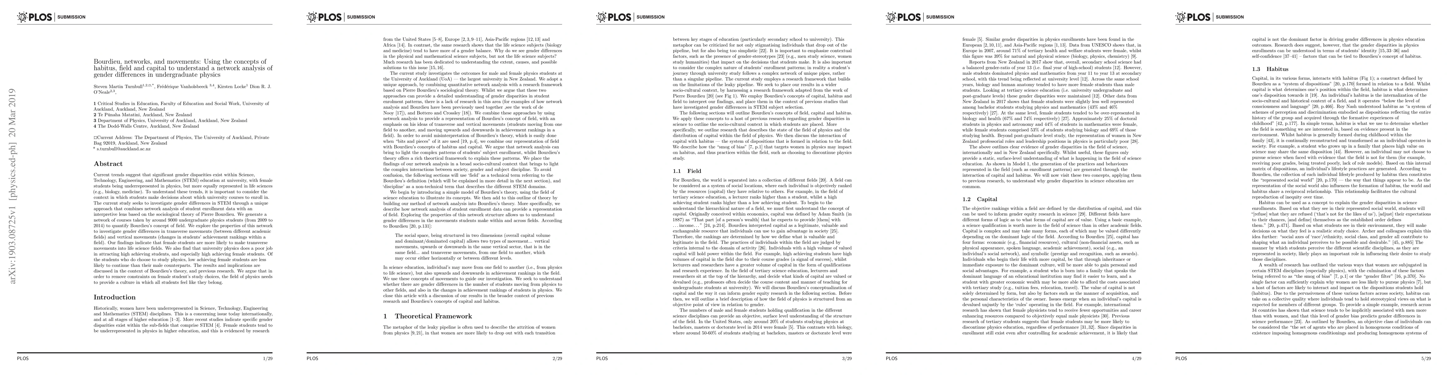 This study combines network analysis and Bourdieu's sociological theory to explore gender differences in STEM education, particularly in physics. It finds that female students are more likely to switch to life sciences and that physics struggles to attract high-achieving students, especially females, leading to higher dropout rates among low-achieving females. The study suggests that fostering an inclusive culture in physics could help address these disparities.