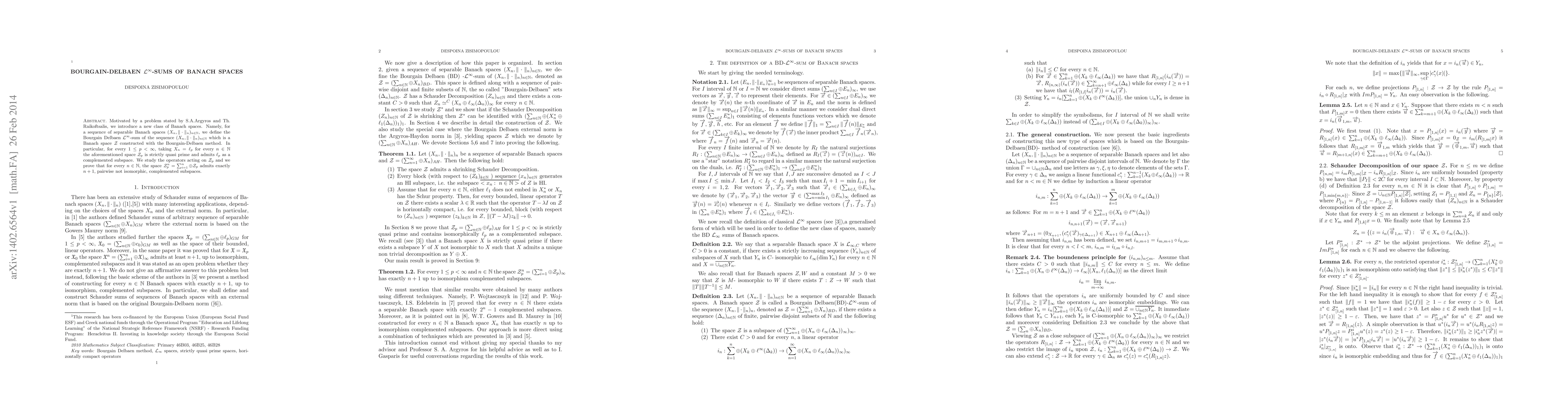Motivated by a problem stated by S.A.Argyros and Th. Raikoftsalis, we introduce a new class of Banach spaces. Namely, for a sequence of separable Banach spaces $(X_n,\|\cdot\|_n)_{n\in\mathbb{N}}$, we define the Bourgain Delbaen $\mathcal{L}^{\infty}$-sum of the sequence $(X_n,\|\cdot\|_n)_{n\in\mathbb{N}}$ which is a Banach space $\mathcal{Z}$ constructed with the Bourgain-Delbaen method. In particular, for every $1\leq p<\infty$, taking $X_n=\ell_p$ for every $n\in\mathbb{N}$ the aforementioned space $\mathcal{Z}_p$ is strictly quasi prime and admits $\ell_p$ as a complemented subspace. We study the operators acting on $\mathcal{Z}_p$ and we prove that for every $n\in\mathbb{N}$, the space $\mathcal{Z}^n_p=\sum_{i=1}^n\oplus \mathcal{Z}_p$ admits exactly $n+1$, pairwise not isomorphic, complemented subspaces.