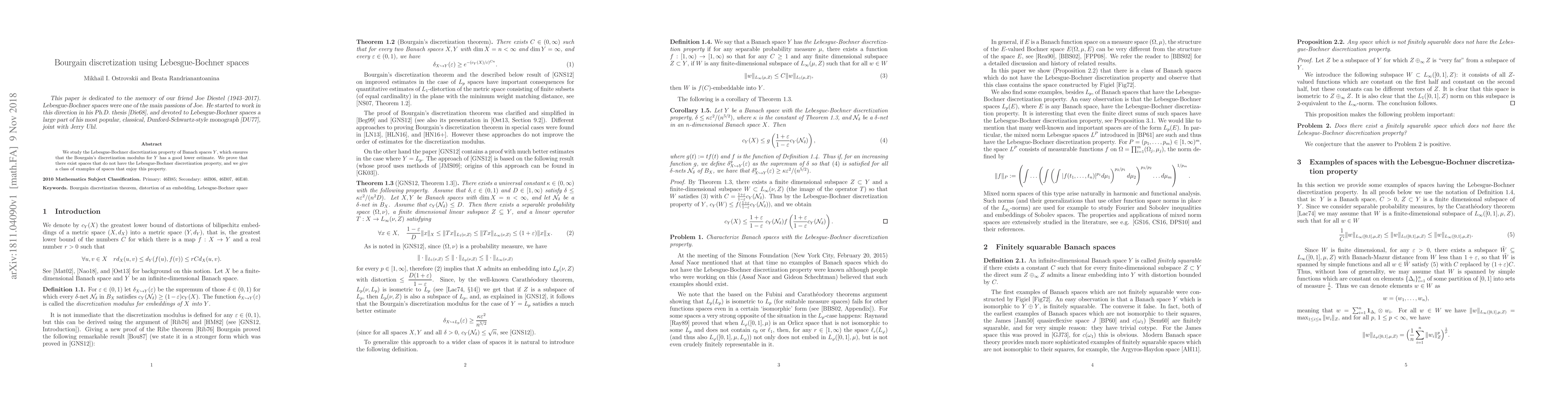 Summary: The paper investigates the Lebesgue-Bochner discretization property in Banach spaces, showing that certain spaces lack this property while others possess it. It provides examples of spaces that satisfy the property, which ensures a good lower estimate for Bourgain's discretization modulus.